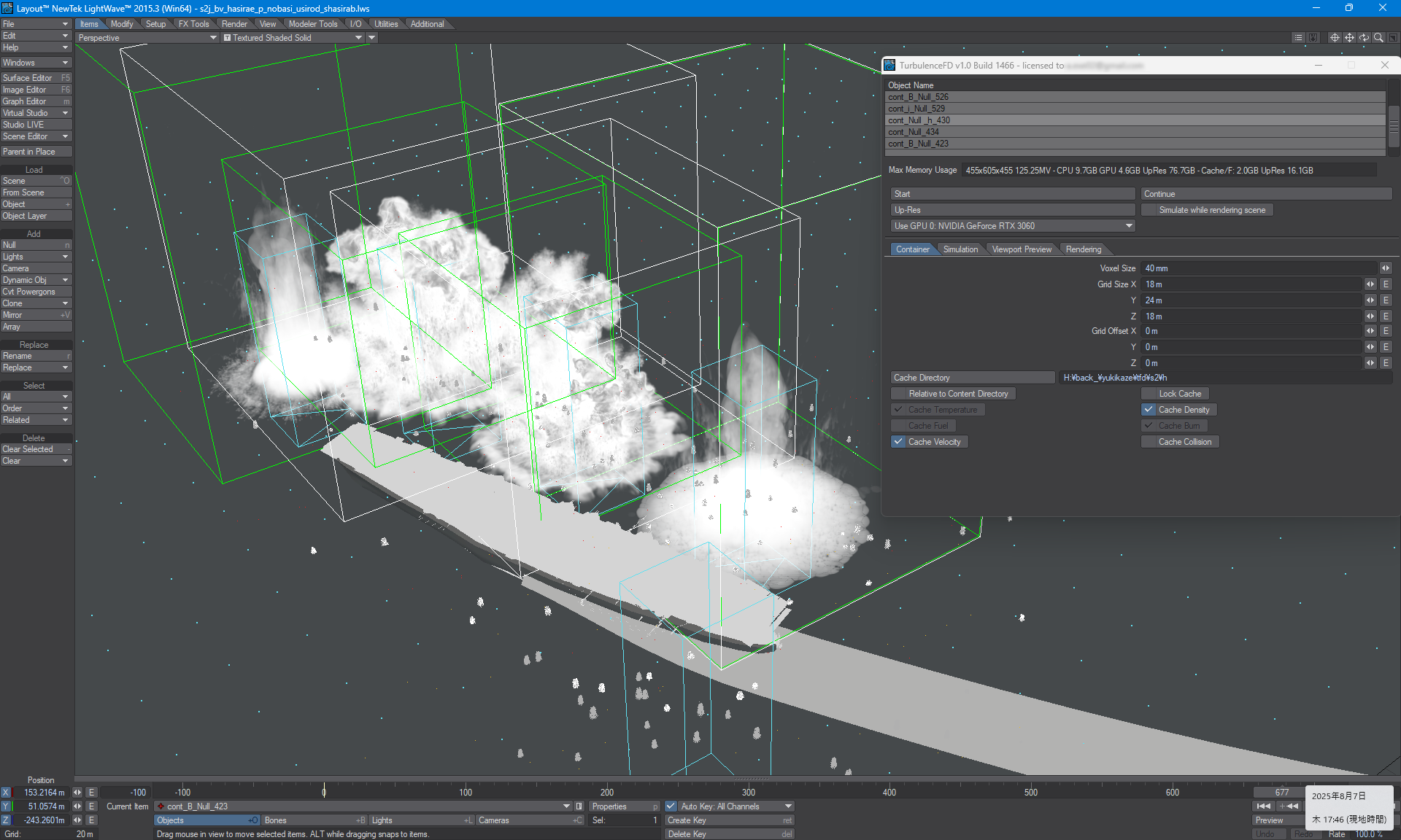 鈴木氏は、LightWave(以下、LW)の古参ユーザーとして知られているが、最近はBlenderも使い始めており、ミッドウェー海戦シーンの制作には、海をBlender、水柱や爆発などのエフェクト表現はLW、そして船体はModoでレンダリングするという合わせ技を用いたそうだ(経験豊富なベテランの成せる技である)。