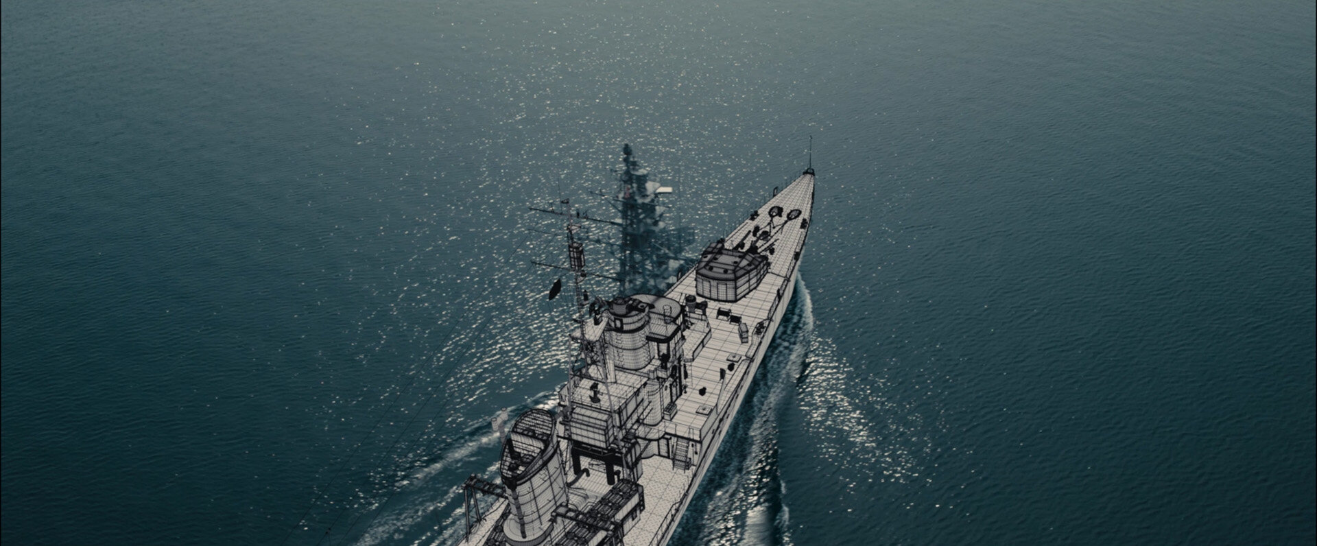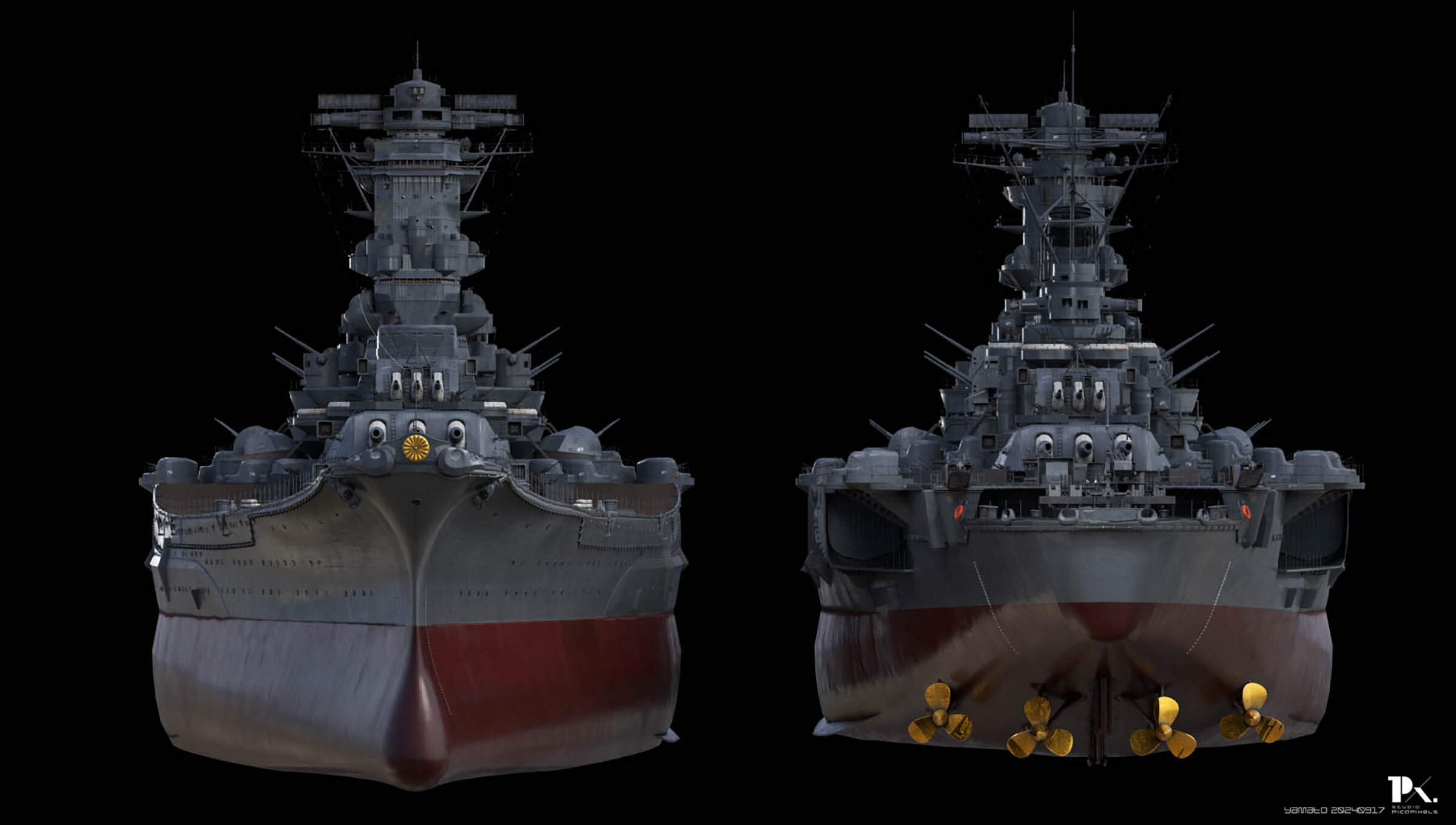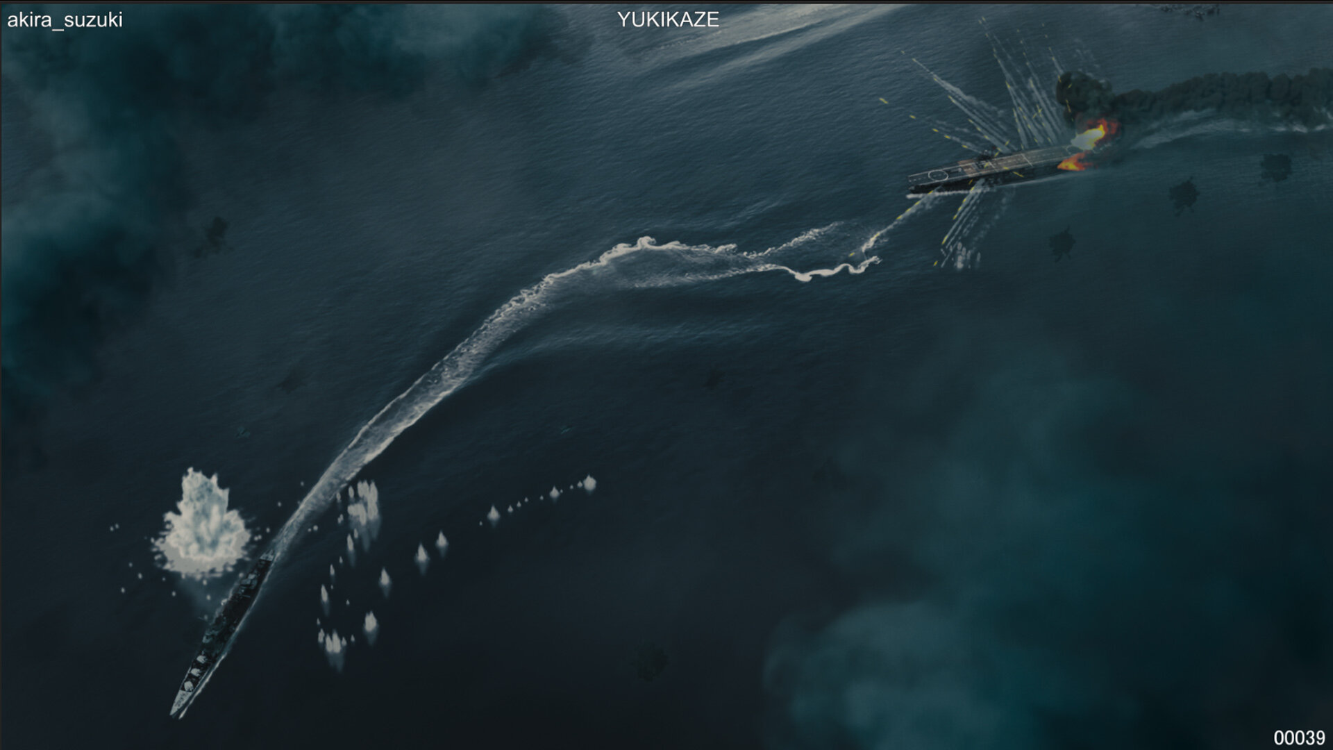 「艦船をはじめとするアセット制作は主に自分たちが担当しました。ほとんどの艦船と戦闘機をイチからつくる必要がありましたが、資料探しは本当に苦労しましたね。太平洋戦争末期になると、資料自体が存在しないことが多いですし、実際に乗船されていた方の手記も当事者目線で書かれているため同じ船に乗っていた別の方の手記と矛盾することもありました。できるだけ資料に基づいて作成しつつ、どうしてもわからない場合は、演出に沿うかたちに調整するという感じでアセットをつくっていきました」と、山元太陽VFXプロデューサー。