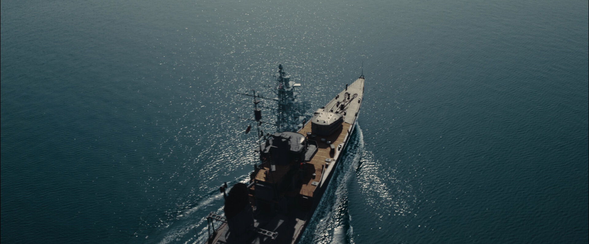 また海上自衛隊協力の下、海の実写素材も撮影された。「引き波(船の航行時に後ろに生じる波)については、とても良い素材が撮れました。ですが、海面については凪の画しか撮れませんでした。そこで激戦シーンでは実写の海に、CGで作成した海面を合成するといった対応も必要になりました」(オダ氏)。
