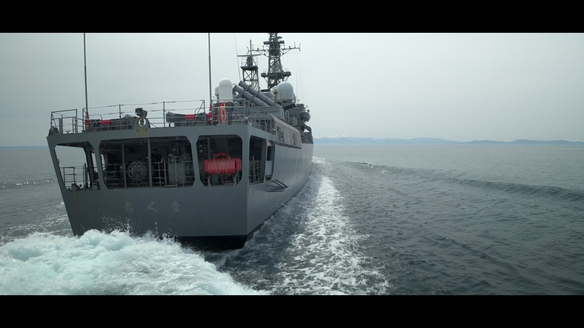 なお同社は、海上自衛隊の護衛艦「ちくま」が航行する実写素材を、雪風のモデルに置き換えた上でナイトシフト処理を施すという特別なショットなども担当した。「照明や質感調整を重ねることで、静かな中にも緊張感のある空気感を意識しました。監督チェックで『こういう見え方が“雪風”らしい』と言ってもらえたのが印象的でした」(金元氏)。