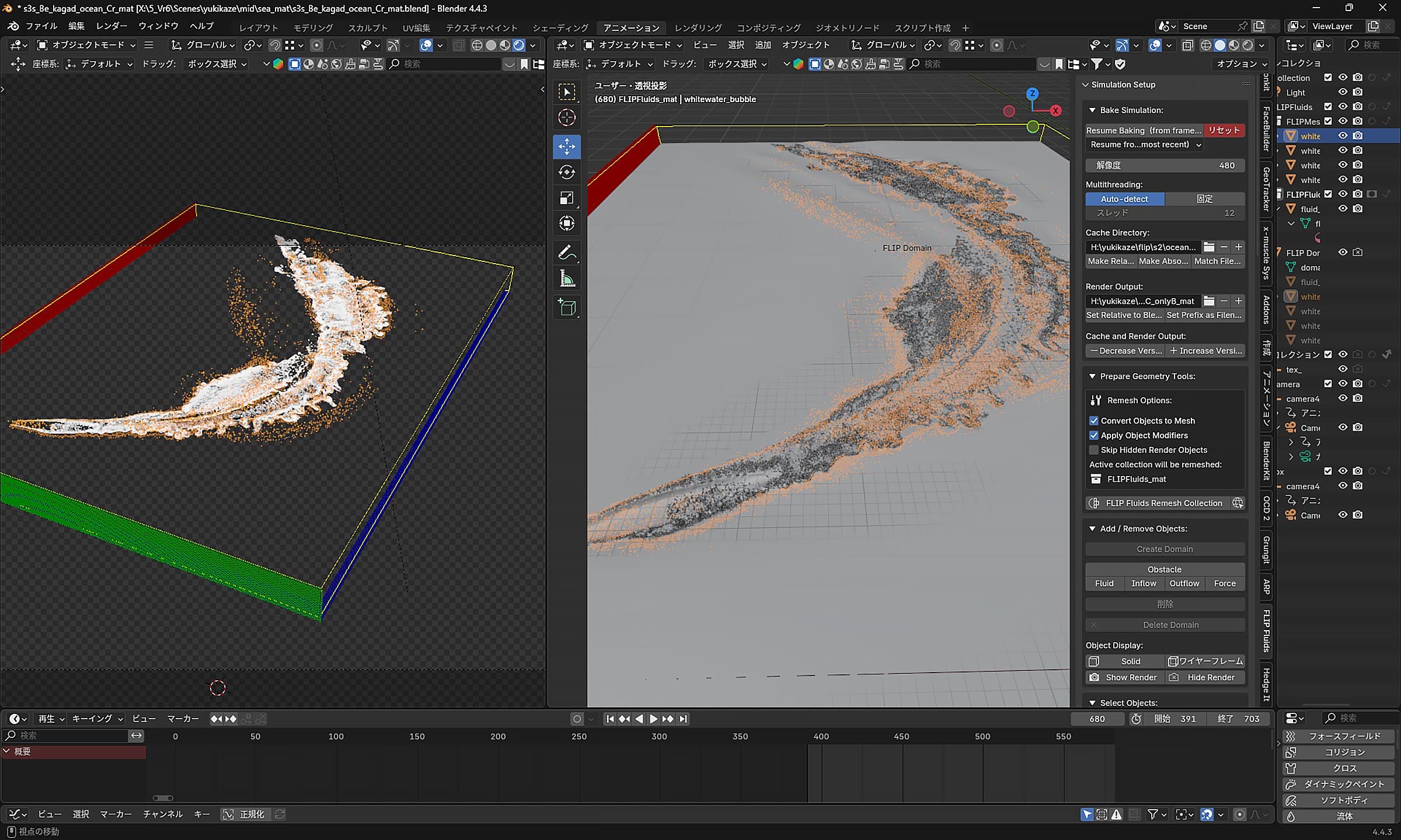 「海面の表現では、BlenderアドオンFlipFluidsも利用しました。コリジョンを伴うショットなど、派手なFXはレンダリングやシミュレーションの速さという意味でもHoudiniで作業しました。爆破表現にはEmberGenも利用していいます」と、イメージ・ロジックの金元省吾VFXディレクター。