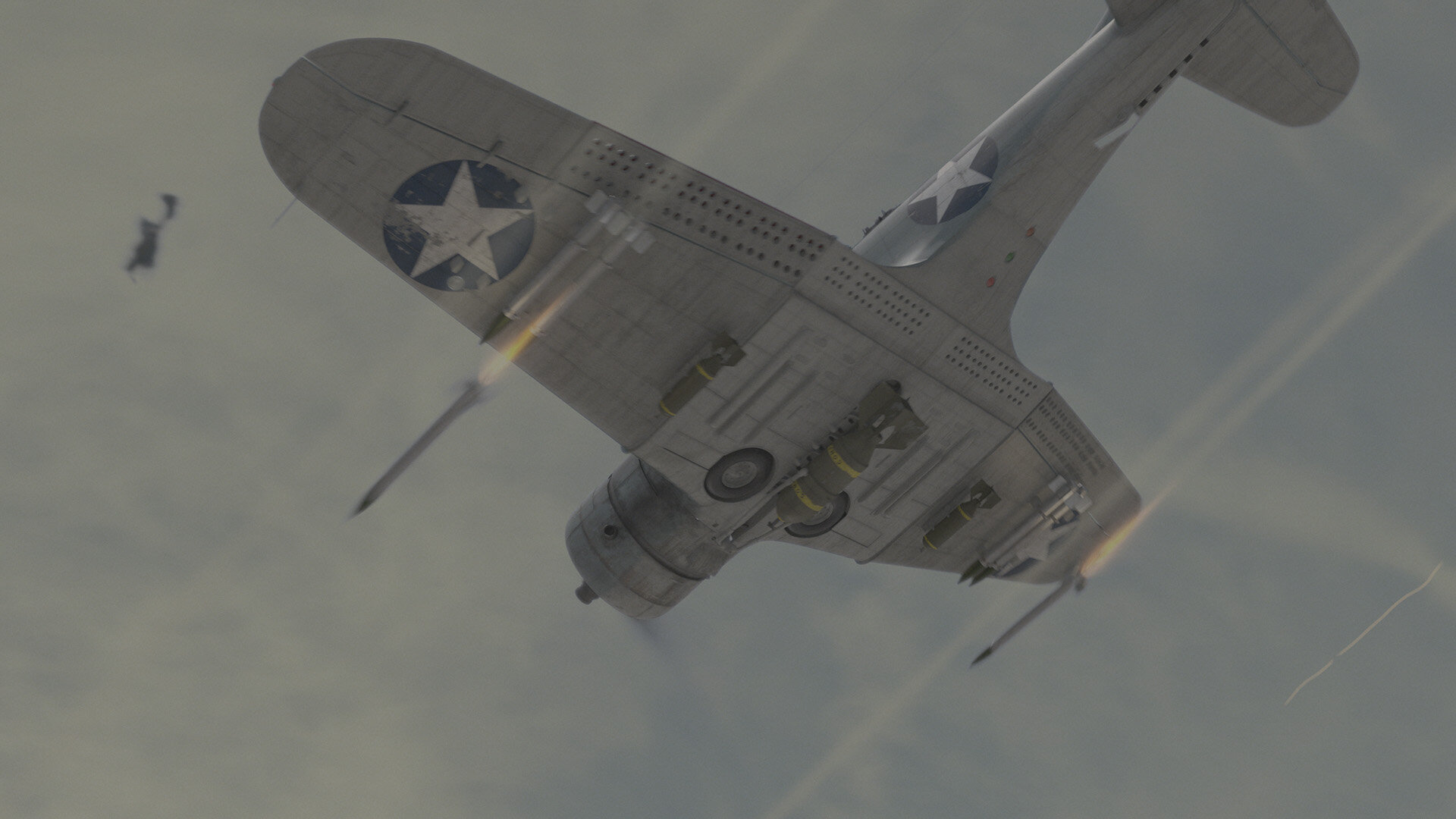 また冒頭のミッドウェー海戦シーンは、フィルム撮影した記録映像風のルックに仕上げることで、以降に続く本編とは意図的にルックが変えられている。「いわゆるフォトリアルではなく、各シーンで本作独自の画づくりを行いました。その最たるものがミッドウェー海戦のシーンですが鈴木さんにモデリングから一括で担当していただきました」(オダ氏)。