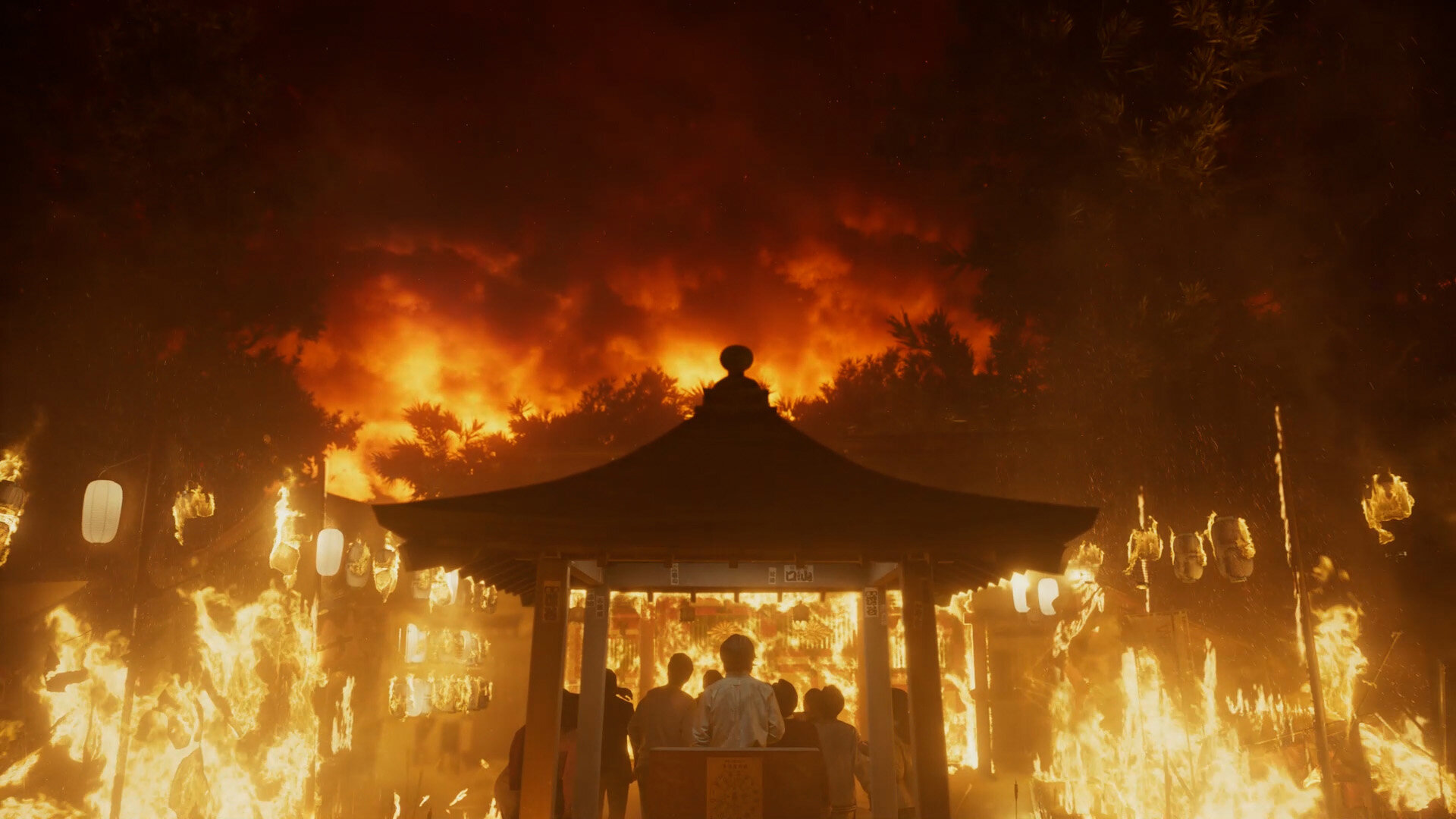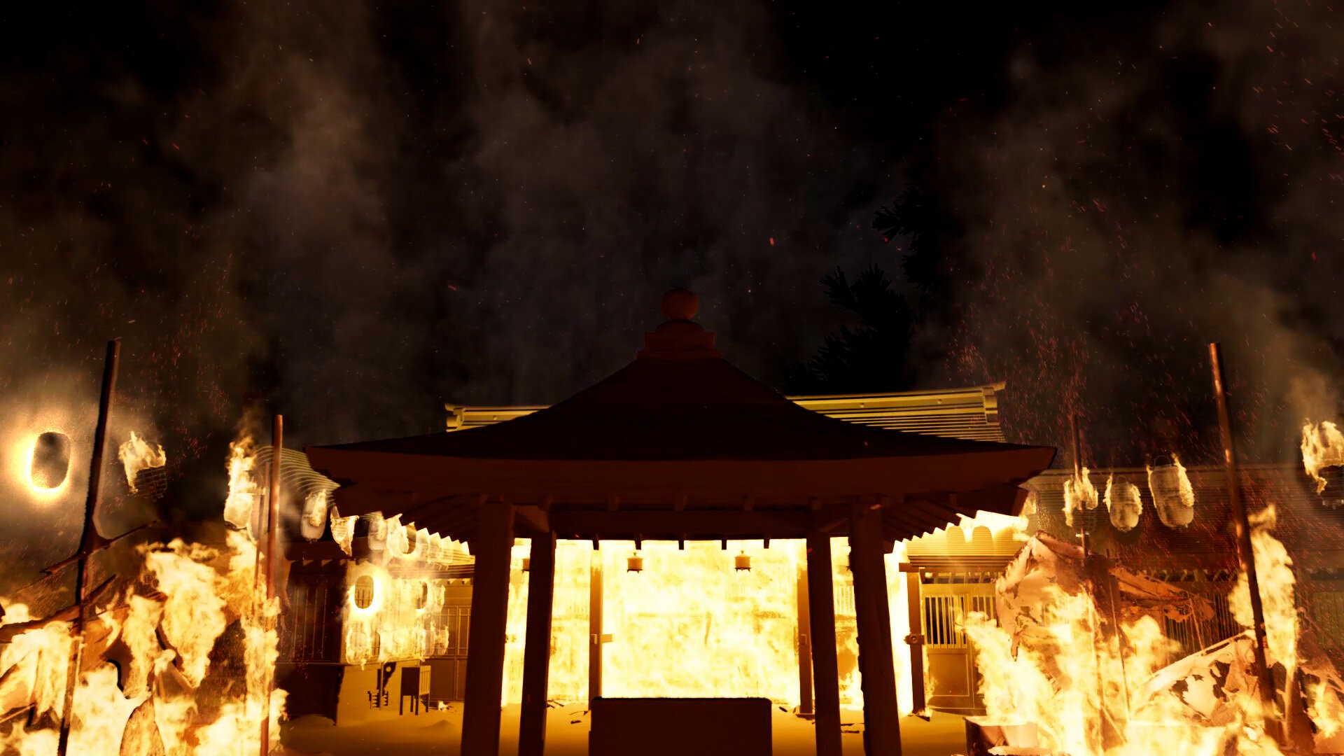 エピソード2で描かれる「げぇむ:おみくじ」では、クイズを間違えると正解との誤差の数だけ火矢が飛んでくる。こちらのVFX実作業はTHE SEVENのチームが担当した。