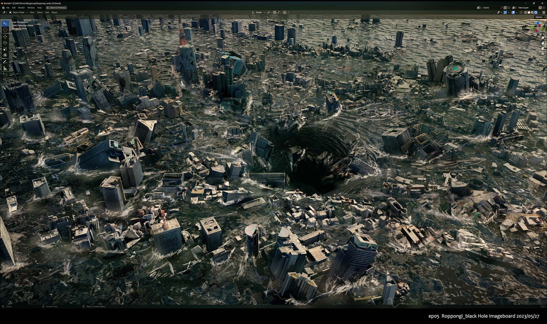 さらに後半のエピソードでは、先述した通り、地殻変動によって渋谷から六本木にわたる広いエリアが破壊され、土石流に呑み込まれる。そうした破壊表現を加える必要がある背景アセットについては、それを加味したつくり込みも行われた。