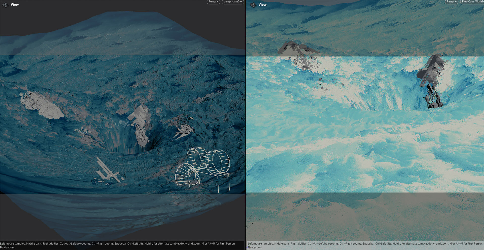 さらにDFでは、ライティングからルックデヴまでの一連にHoudiniのSolarisを用いたUSDベースのワークフローを採用した。