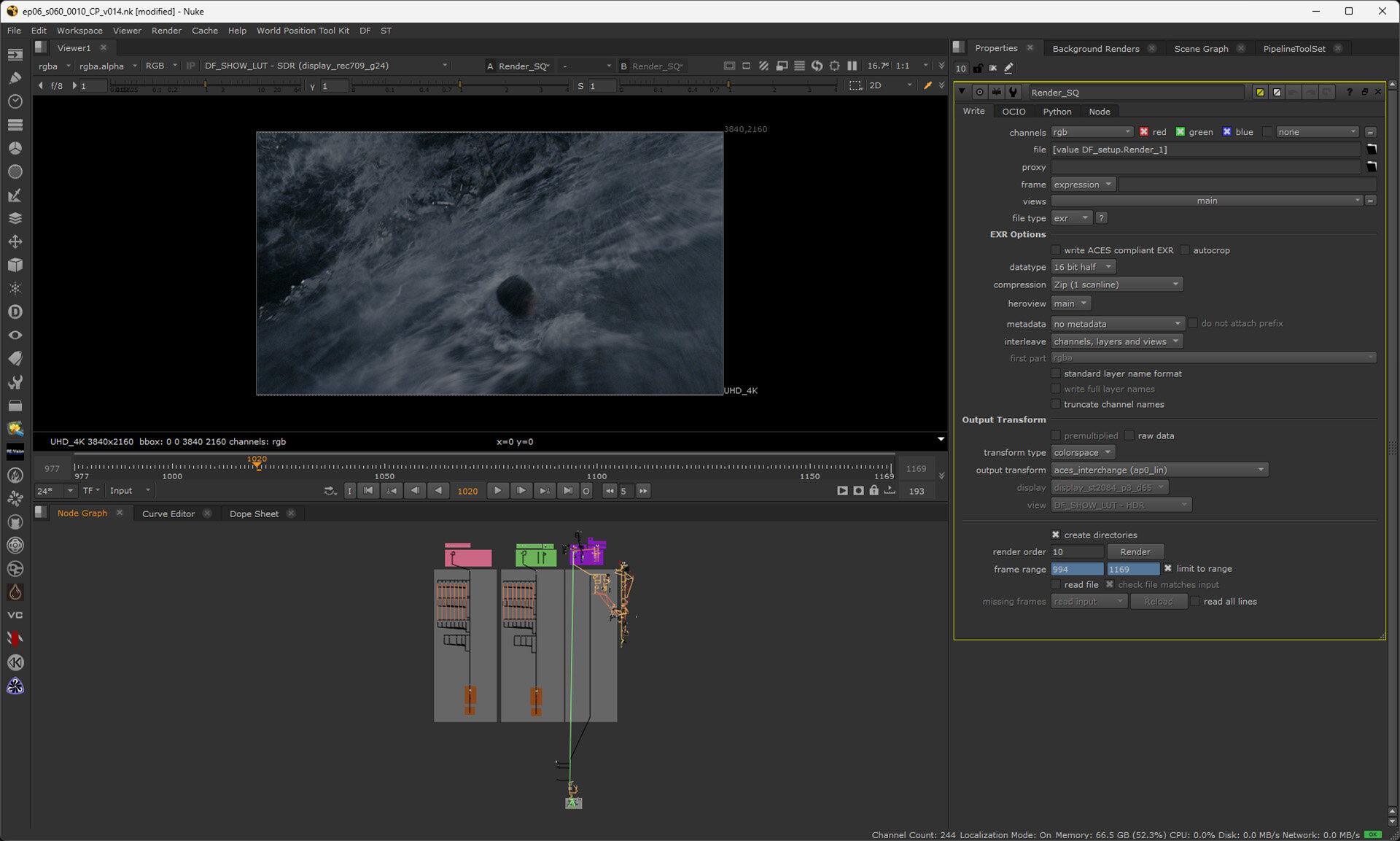 クライマックスの地殻変動シーンの制作では、Solarisのパイプライン開発からBGチームとFXチームが密なやり取りを重ねたという。
