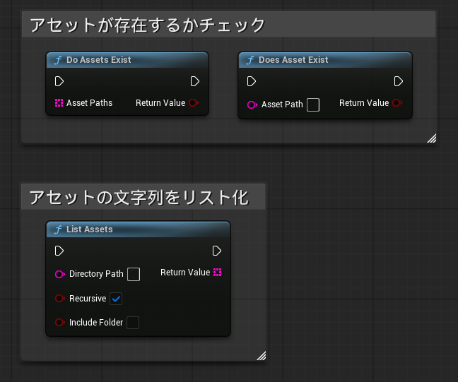 その他にも、「アセットが存在するかをチェックする関数」や「ディレクトリ内のアセットパスの配列を返す関数」など、ツール開発をサポートする様々なユーティリティ関数が用意されています。