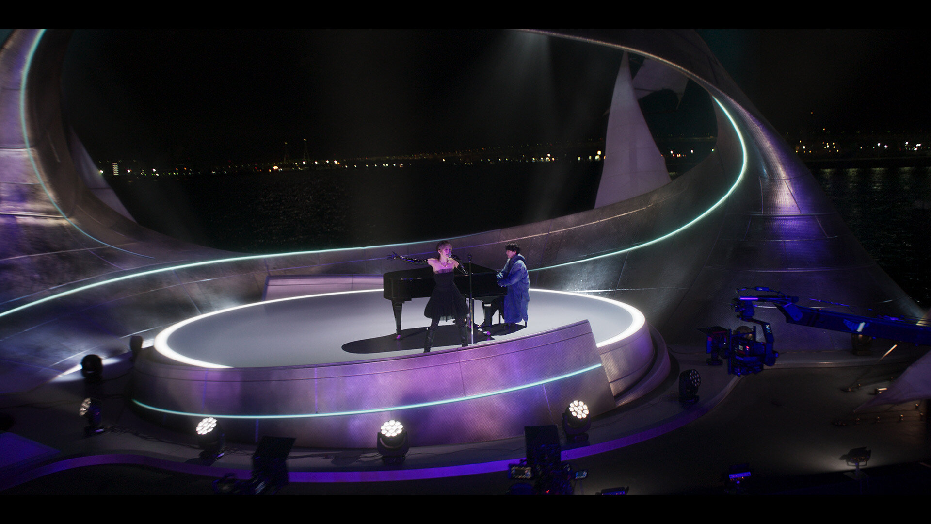 そんな本作のVFXには、実写プレートに込められたライブの熱気、リアルな照明やフォグによるステージ演出はそのままに現実では不可能な要素を加えるという独自の画づくりが求められたという。
