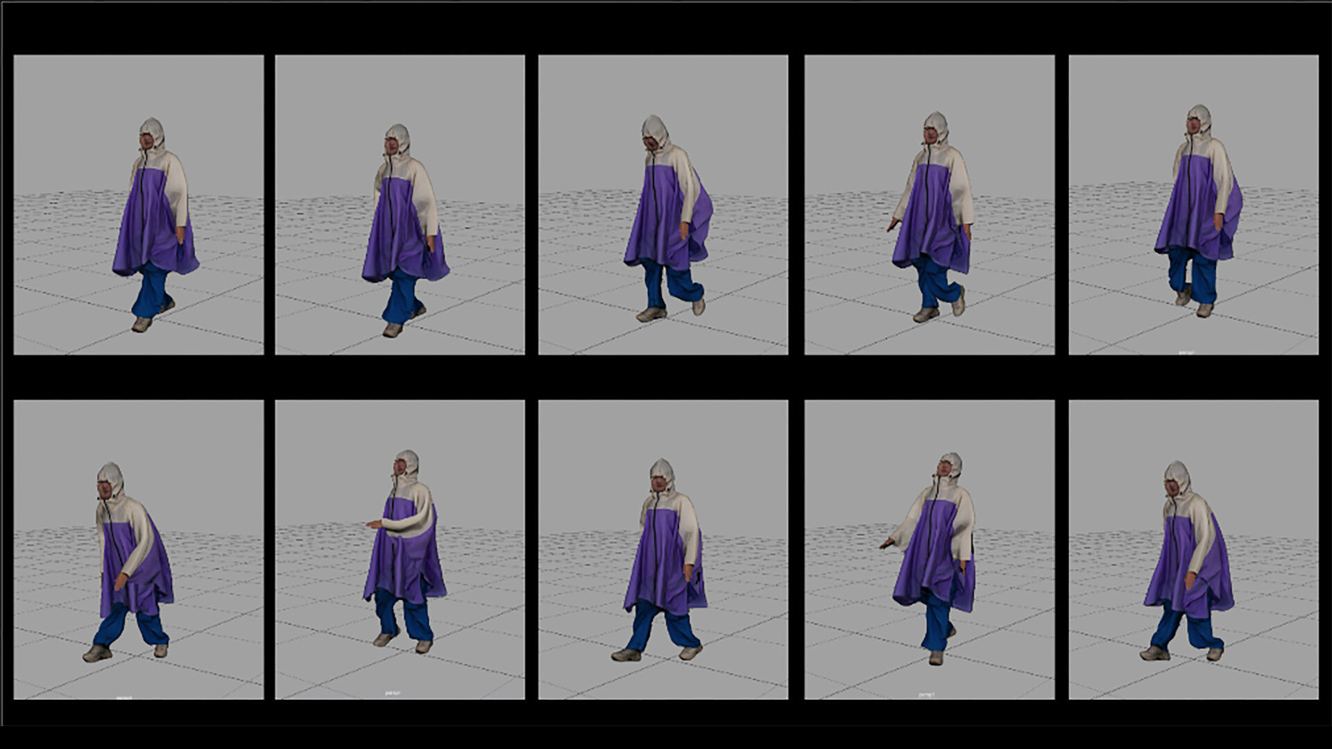 ▲ ボリュメトリックデータをMayaに読み込み、HumanIKでバインド、リターゲットした状態。このモーションデータからポイント情報のみをHoudiniに書き出して群衆シミュレーションを行う