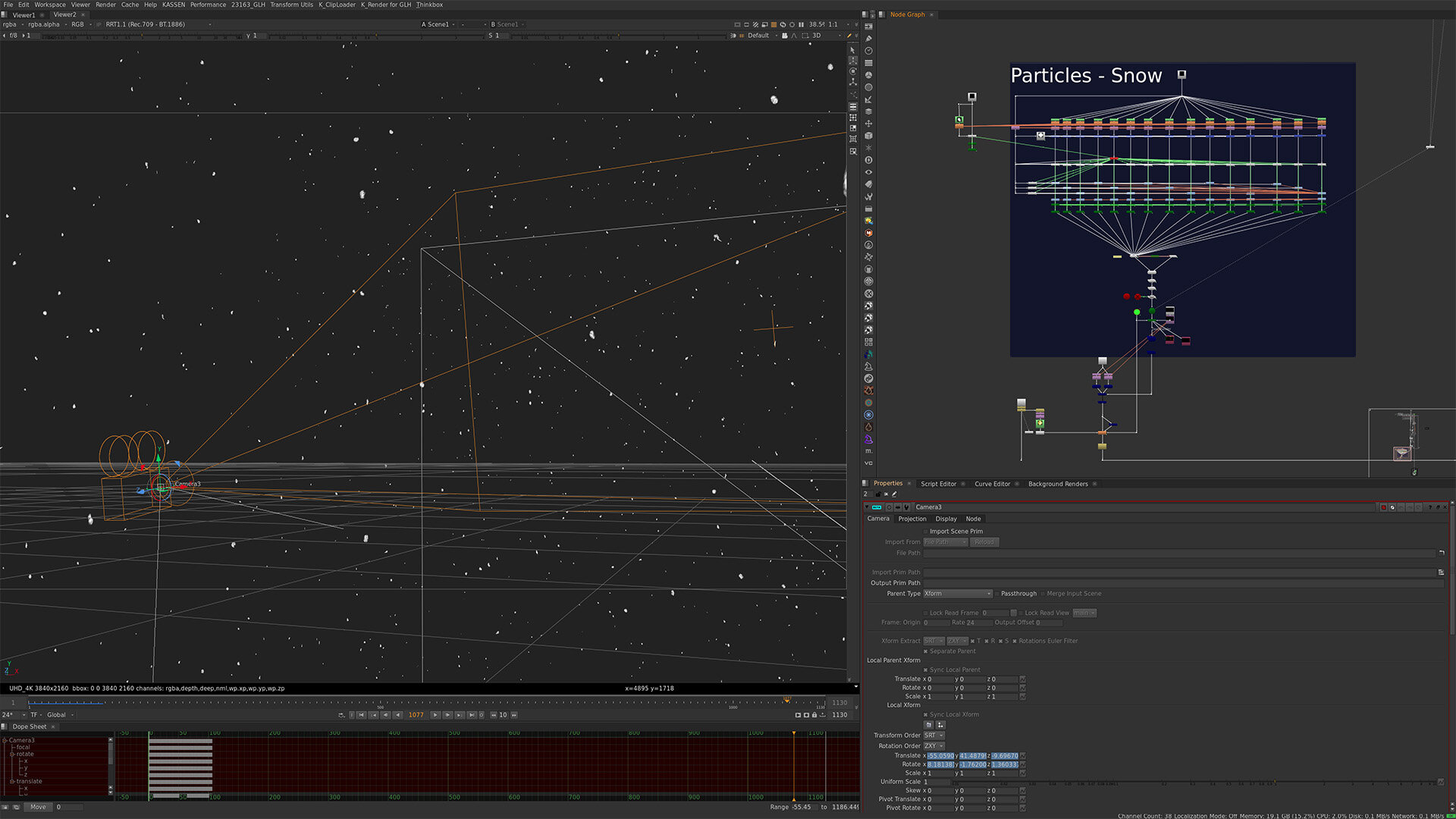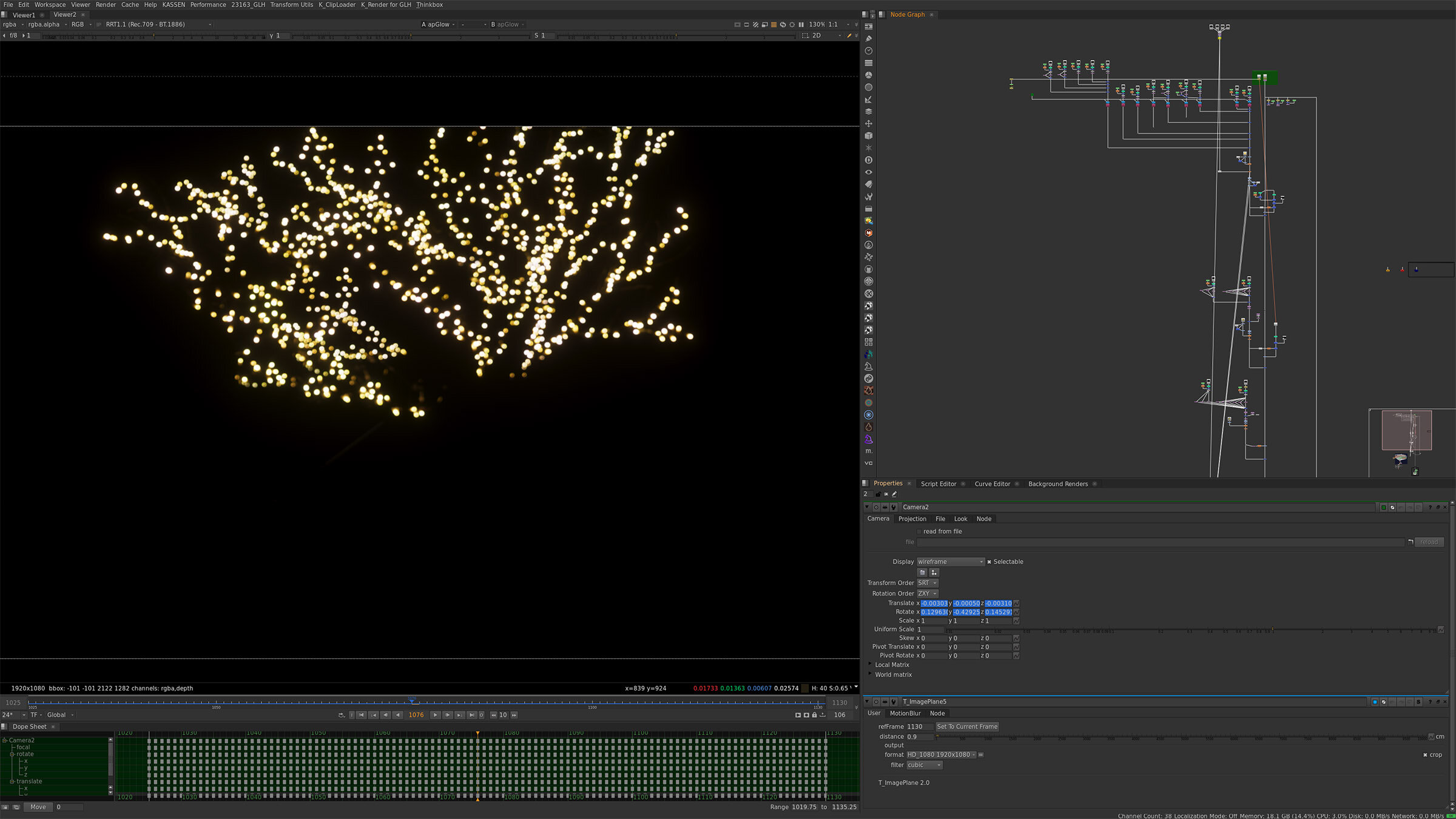 『グラスハート』では、Flow PTの環境変数を利用したK_AppLauncherによる自動処理を効率的に行うためのしくみを風巻 誠FXスーパーバイザーが構築。特に効果を発揮したのが、10万人規模の野外ライブの表現で要となった観客の群衆と実写撮影時のリアル照明演出のHoudini上で再現&拡張する作業であった(後述)。ほかにもKASSENではDeadlineにジョブをSubmitする「K_Render」、NukeのCopyCat処理をDeadlineに投げて分散化させる「CopyCat Submitter」などの支援ツールを開発・運用することで効率化が図られている