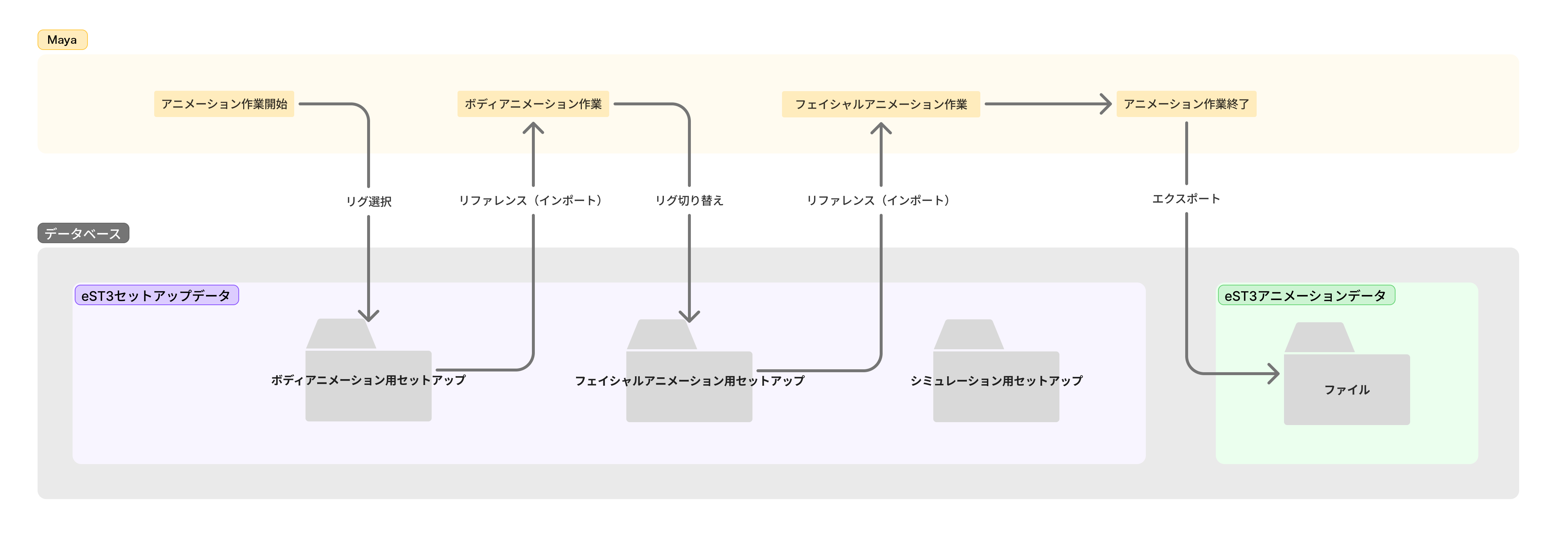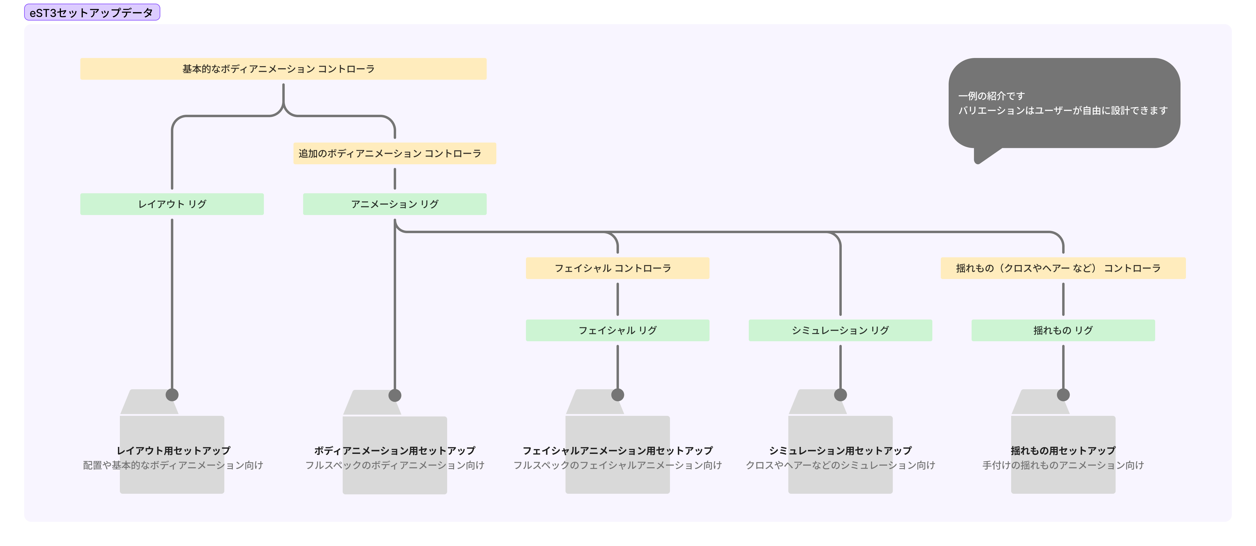 eST3は、リグやアニメーションのためのフレームワークです。その本質は「規格の集合」と、それを運用するための「ライブラリ群」にあります。