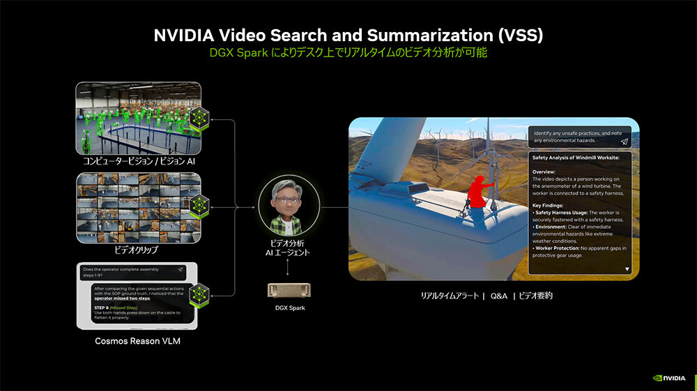 2025年9月にリリースされたVSS2.4では、「NVIDIA DGX Spark」を含むNVIDIA Blackwell世代のプラットフォームがサポート対象となり、ワークステーションやエッジデバイスでもVSSが実行可能となった。とりわけ、DGX Sparkは約60万円からという破格のAIシステムであり、そのインパクトは大きい。そもそもVSSのソフトウェア自体は無料で提供されているため、その恩恵は計り知れないと言えるだろう。