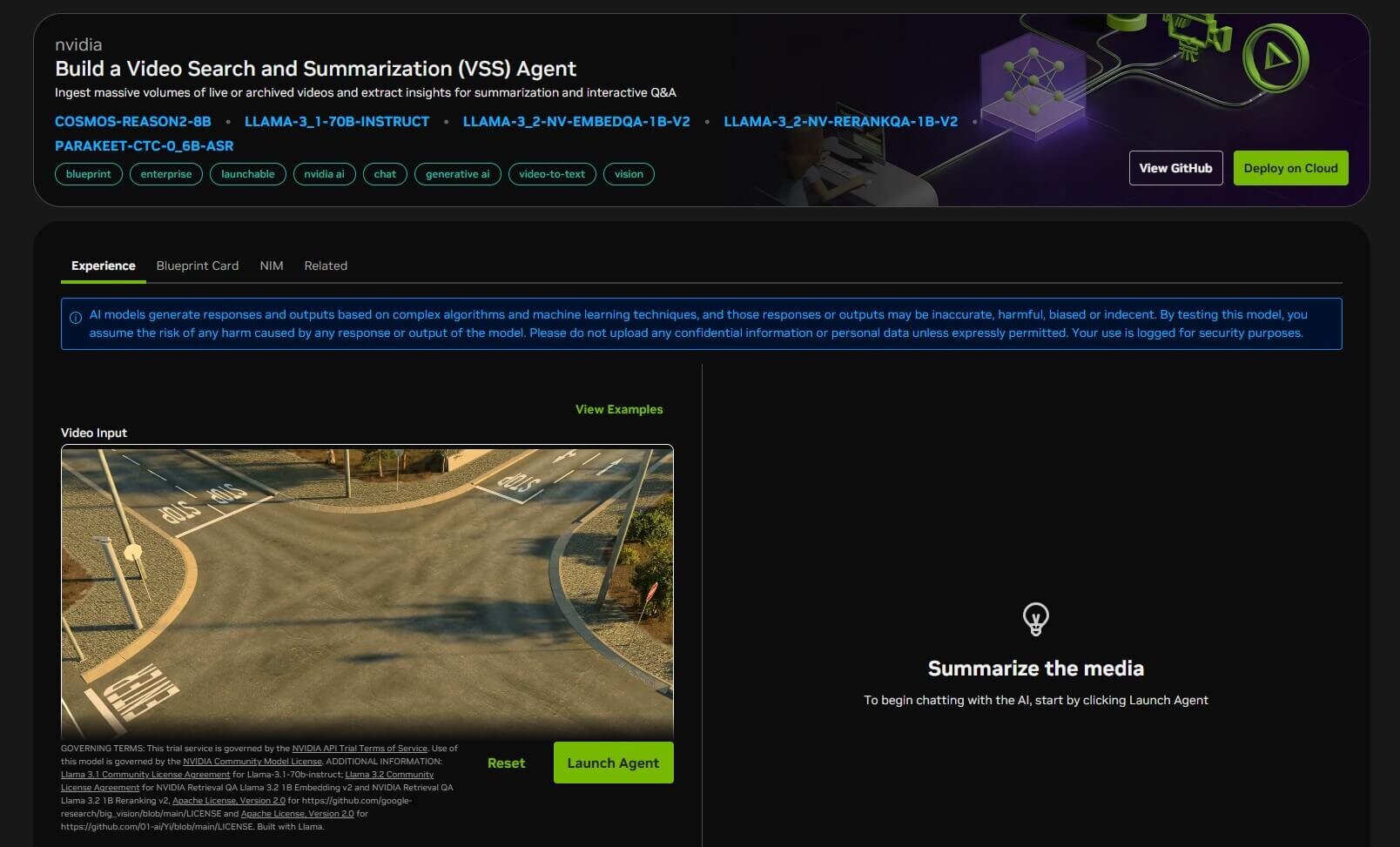 またNVIDIAは、開発者が最新のAI技術を手軽に試せる場として「NVIDIA APIカタログ(build.nvidia.com)」を公開している。VSSも本カタログに登録されており、無料でその機能を体験することができる。