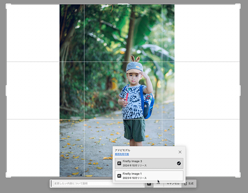 ・Adobe Firefly モデル:Firefly Image 3(1クレジット)