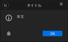 [Title]と[Message]を指定してポップアップウィンドウを表示できます。