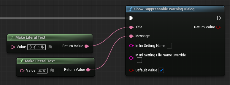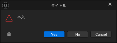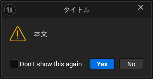 「Show Suppressable Warning Dialog」では、警告のポップアップを表示できます。ボタンは“Yes”と“No”で固定です。
