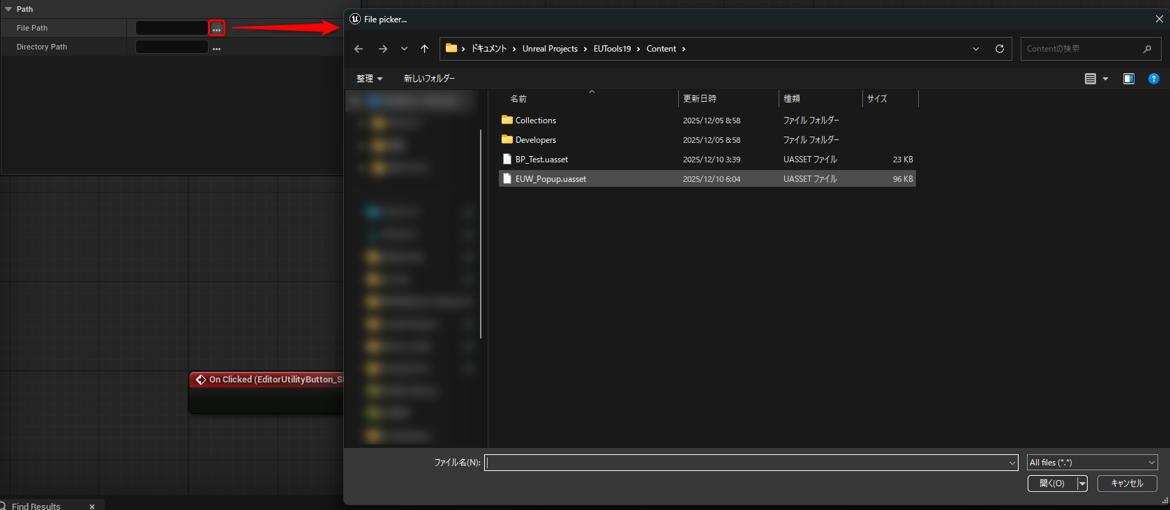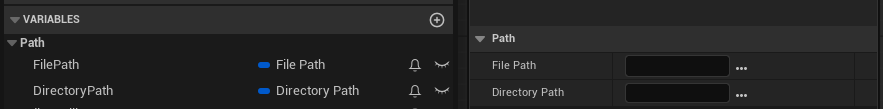 「File Path」もしくは「Directory Path」の変数を定義して、「Details View」などでEUW上に表示します。