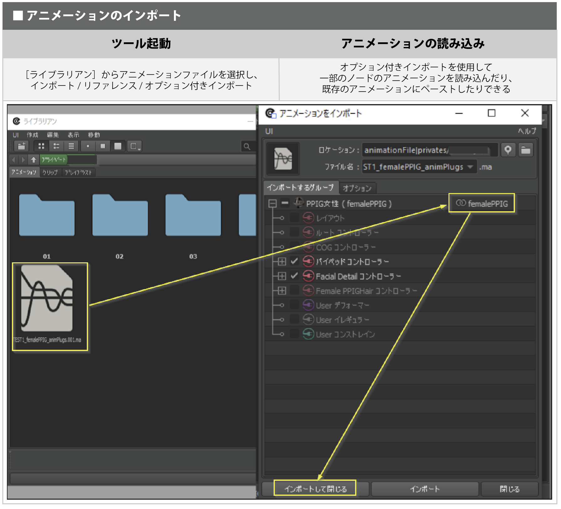 ●ライブラリアンからのアニメーションのインポート