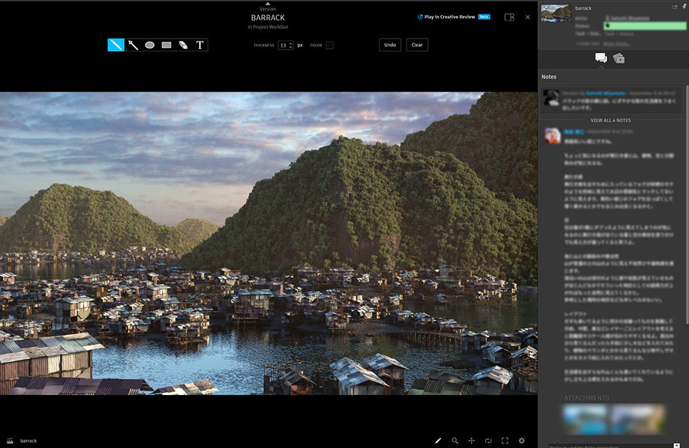 濱口:DMLには「意欲のある人を伸ばしたい」という強い思いがあります。その象徴が、社内で続いている作品添削会ですね。スタッフが個人制作の静止画や動画をFlow Production Tracking(以下、Flow PT)に投稿すると、先輩たちが自由にアドバイスする場で、拠点に関係なく参加できます。もともとは社内向けの取り組みでしたが、「外にも開いてみては?」という声から、DMLの公式Xでも学生向けの添削会を始めました。