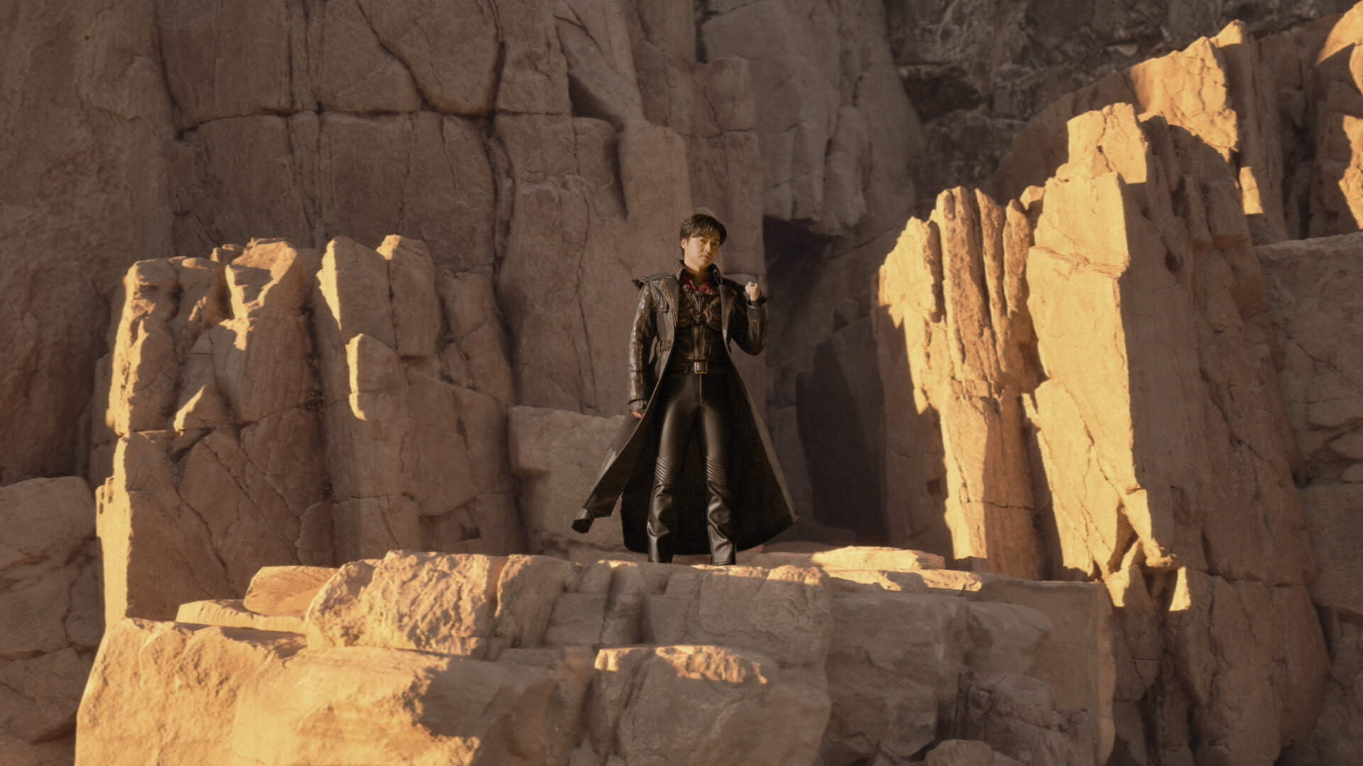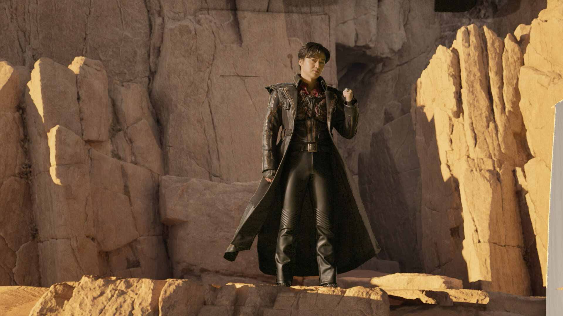 「最初に行なった撮影テストでは、様々な問題が発生して本当にVPで撮りきることができるのか不安もありましたが、撮影を重ねていくと確実に撮影ペースが上がり、スタッフ間のコミュニケーションが円滑になっていきました。特に第1話のラストに登場する道外流牙(栗山 航)が岩山からサガンの街を見下ろすカット(※本記事冒頭のカット)は、撮影時の照明とUEシーンのライティングが絶妙にマッチしていてVP本来の強みを引き出せたと思います」(笹倉氏)。