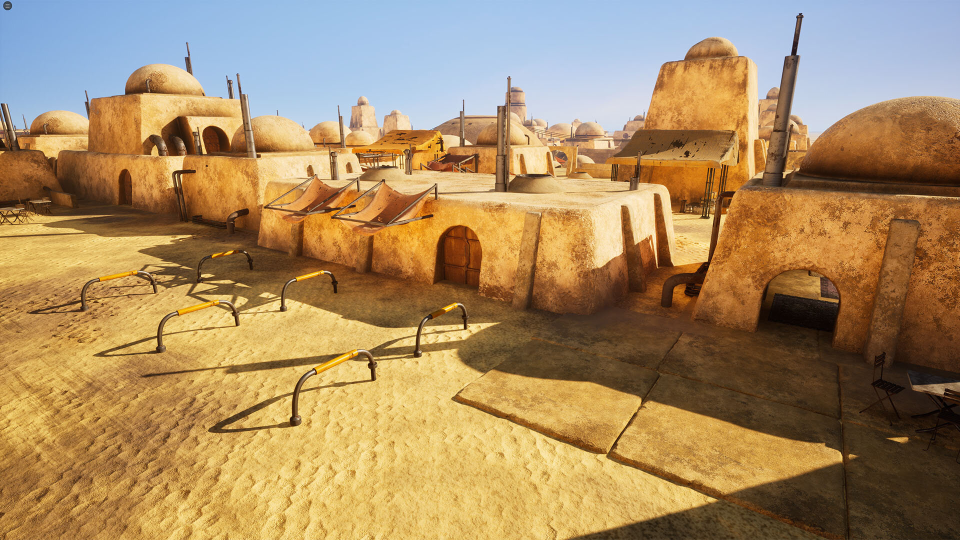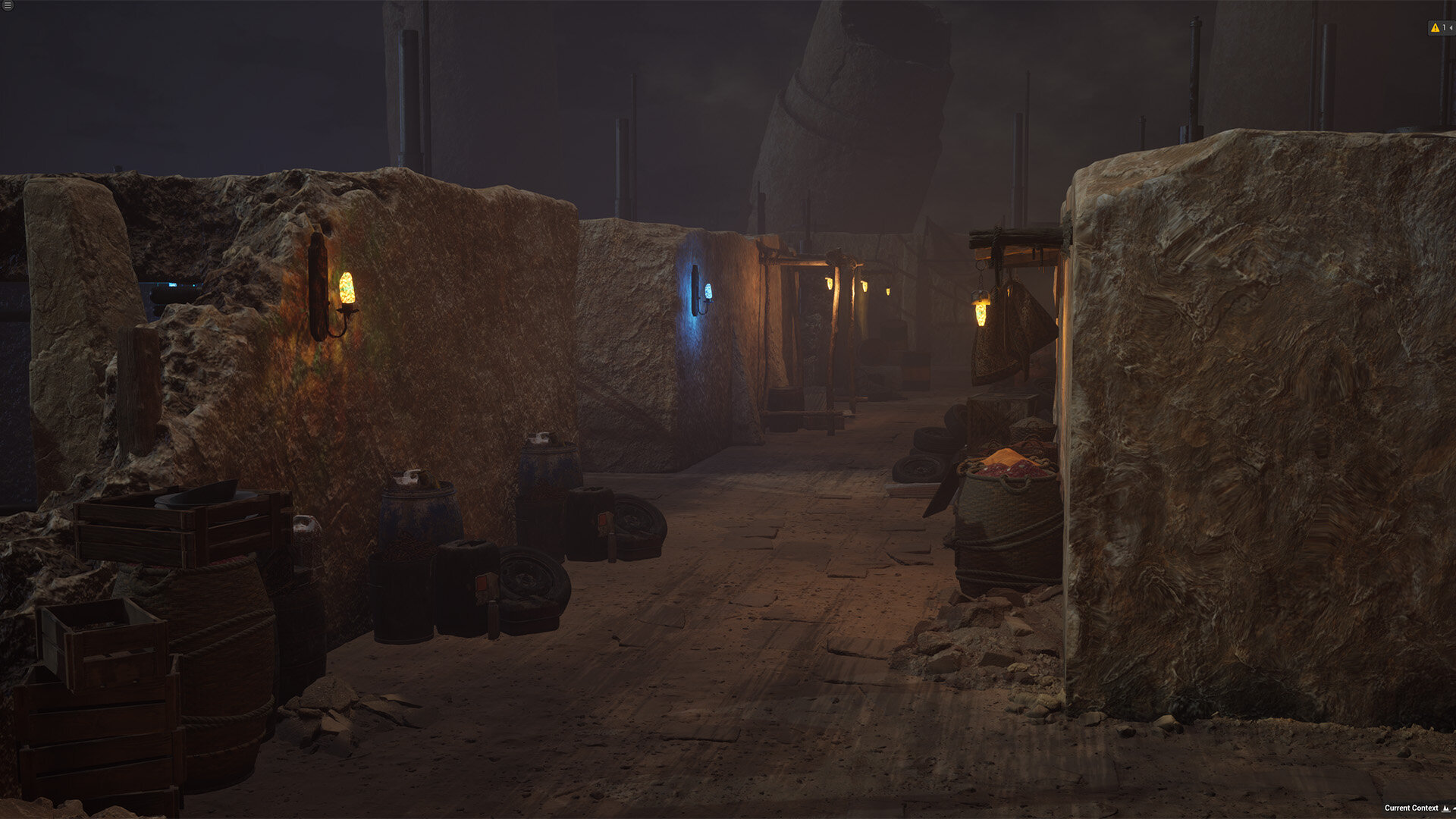 ▲ UEシーン「サガンの街」ブラッシュアップ例。図は、市販アセットをベースにした初期デザイン