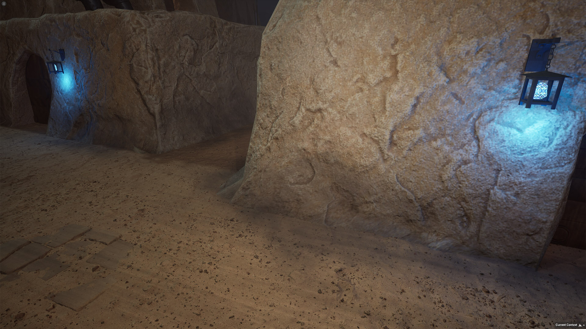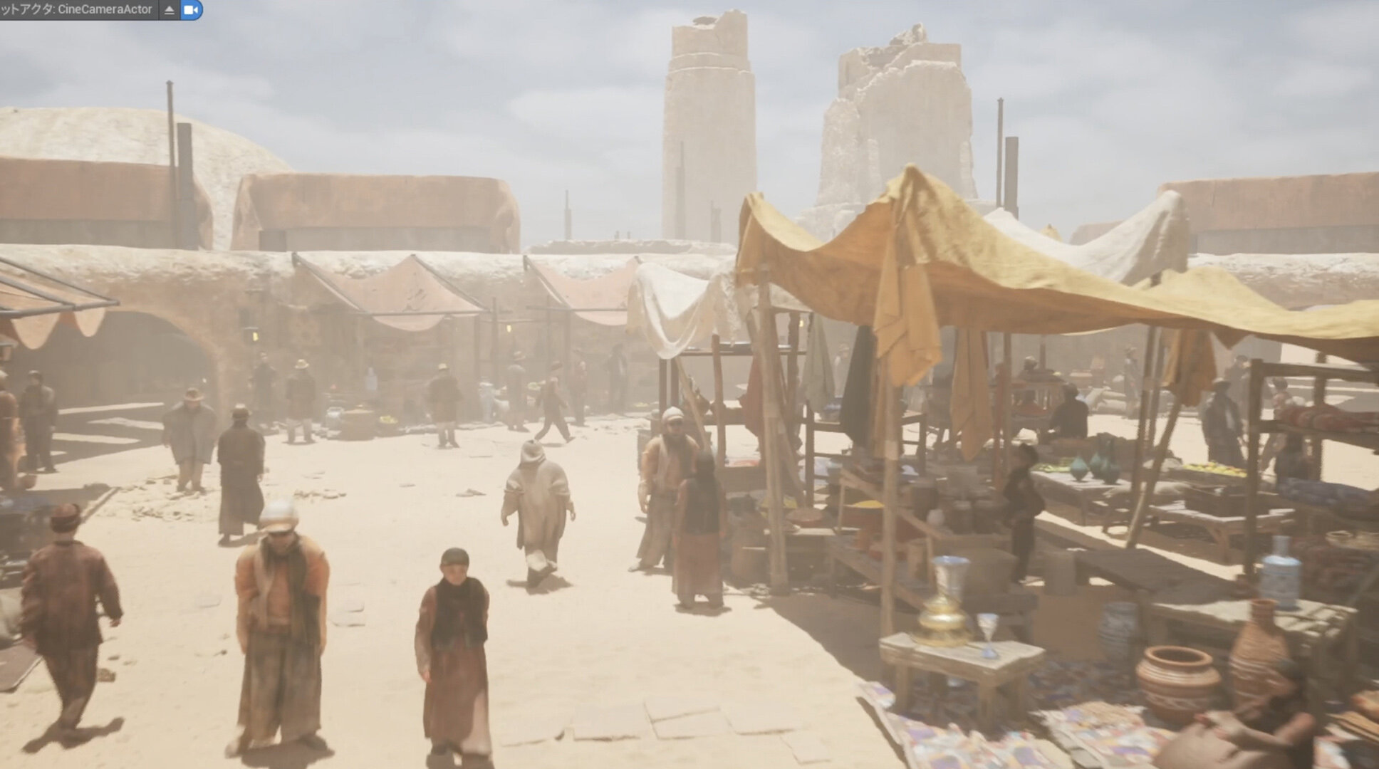例えばサガンの街は、かろうじて砂漠化を逃れたという設定のため、建物と地面の砂が一体化しているような見た目が求められたが、UEのRVT(Runtime Virtual Texture)を利用することで建物と地面各々のテクスチャを自然な見た目にブレンドさせることができたそうだ。