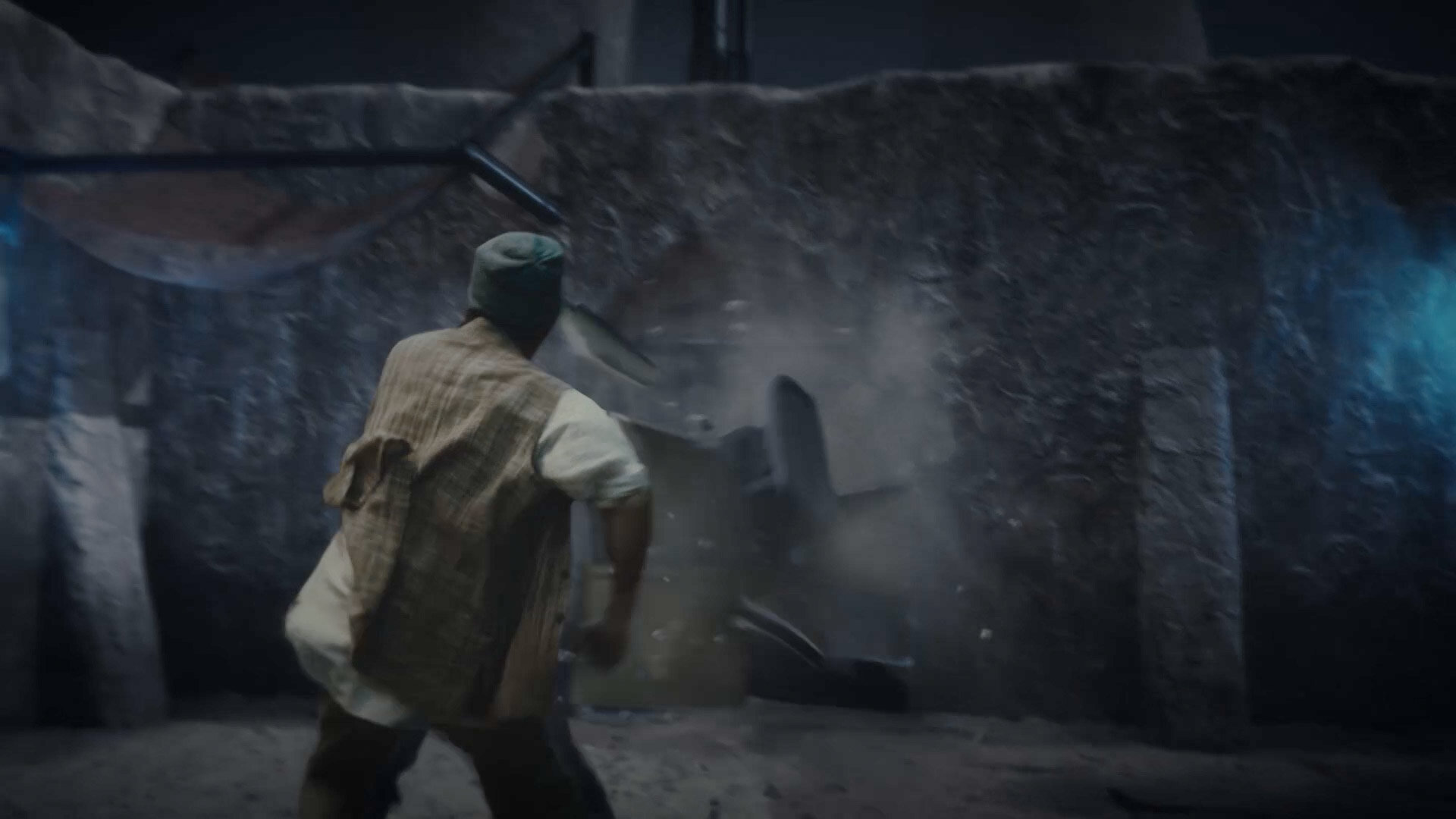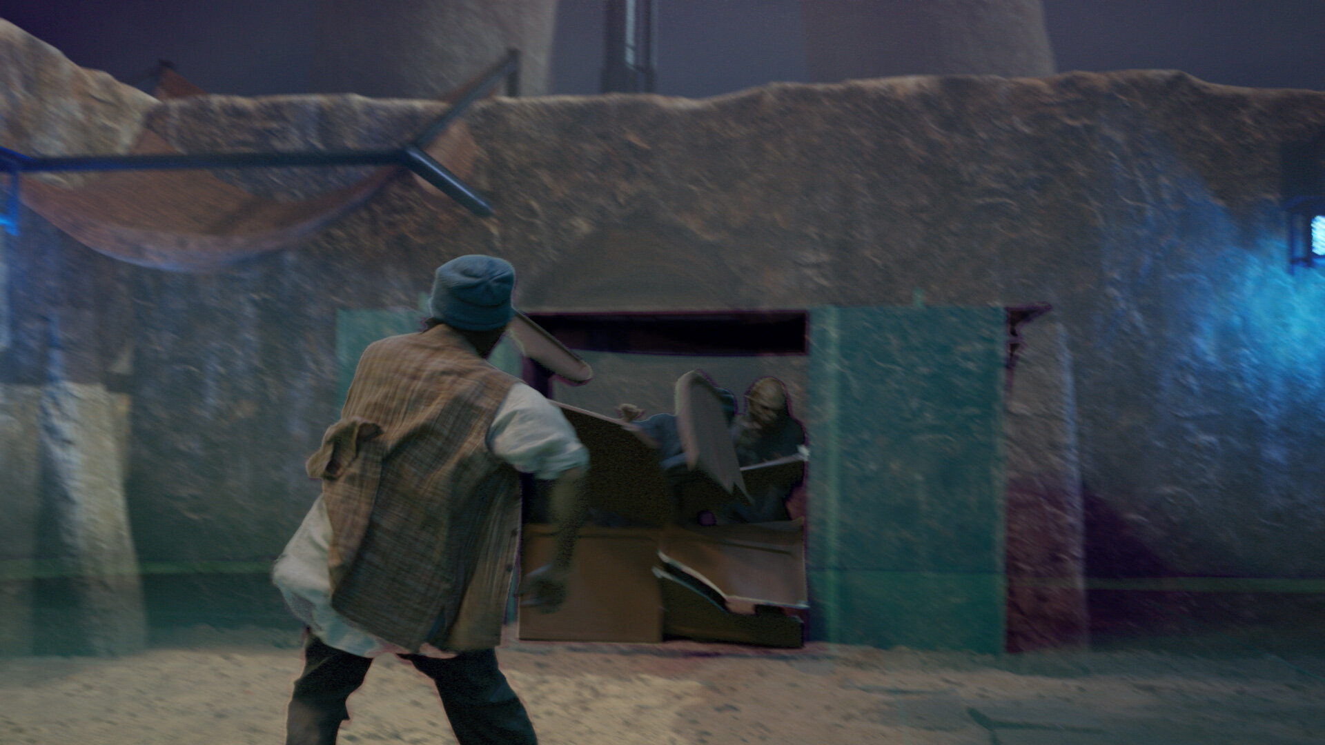 ▲ まりむが担当したショットのブレイクダウン。扉が破壊された奧からホラーが倒れ込むという演出のため、実写とCGの複雑な合成が求められた。図は、フォアグラウンド(実写プレート) -