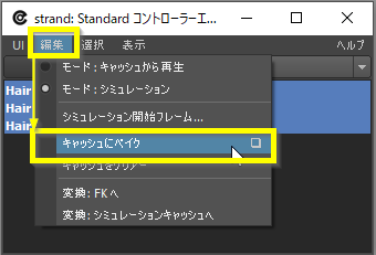 ベイクしたい部位を選択し、[編集→キャッシュにベイク]を実行します。