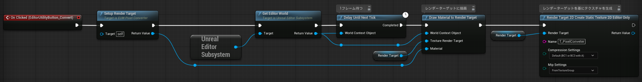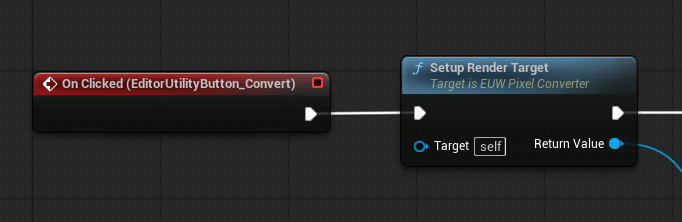 Convertボタンの「On Clicked」イベントを追加し、作成した「SetupRenderTarget」関数に繋ぎます。