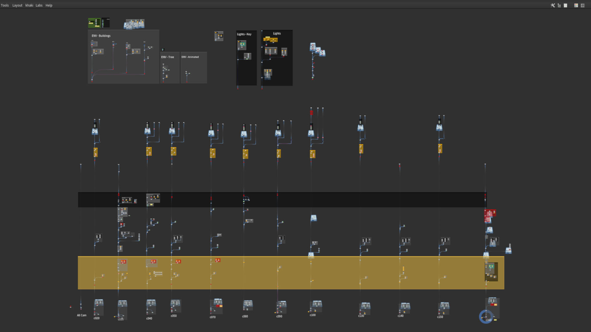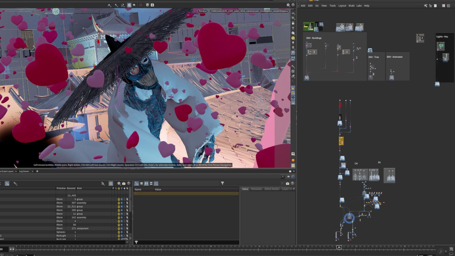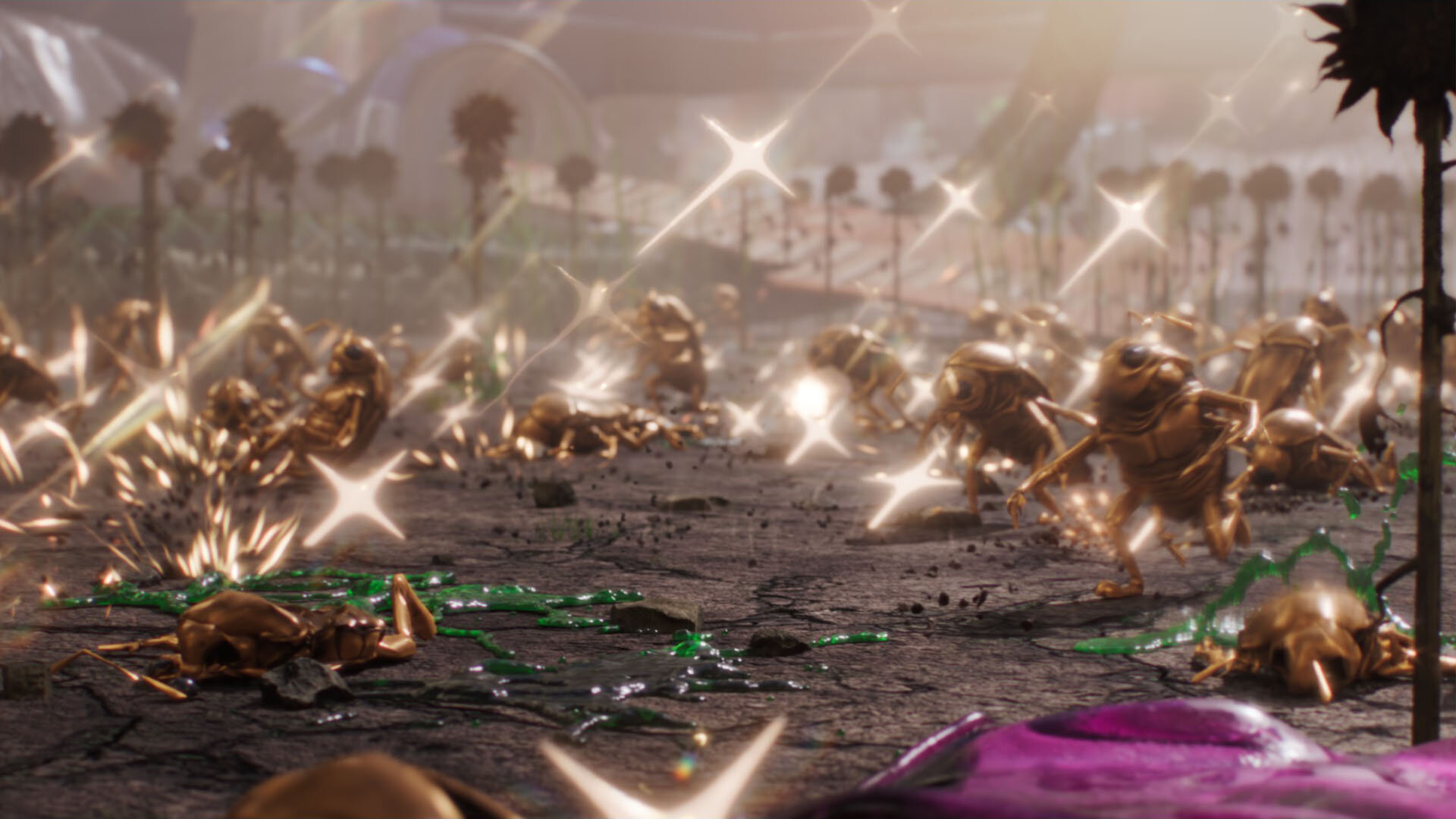 Khakiが担当した2パートはいずれもロング目のカットが多く背景要素も豊富なため、レンダリング負荷が高くなる傾向にあった。RedshiftとKarmaのXPUおよびGPU処理を活用することで処理速度を確保しつつ、アセットが集中するショットには重点的にリソースを割いて対応したという。