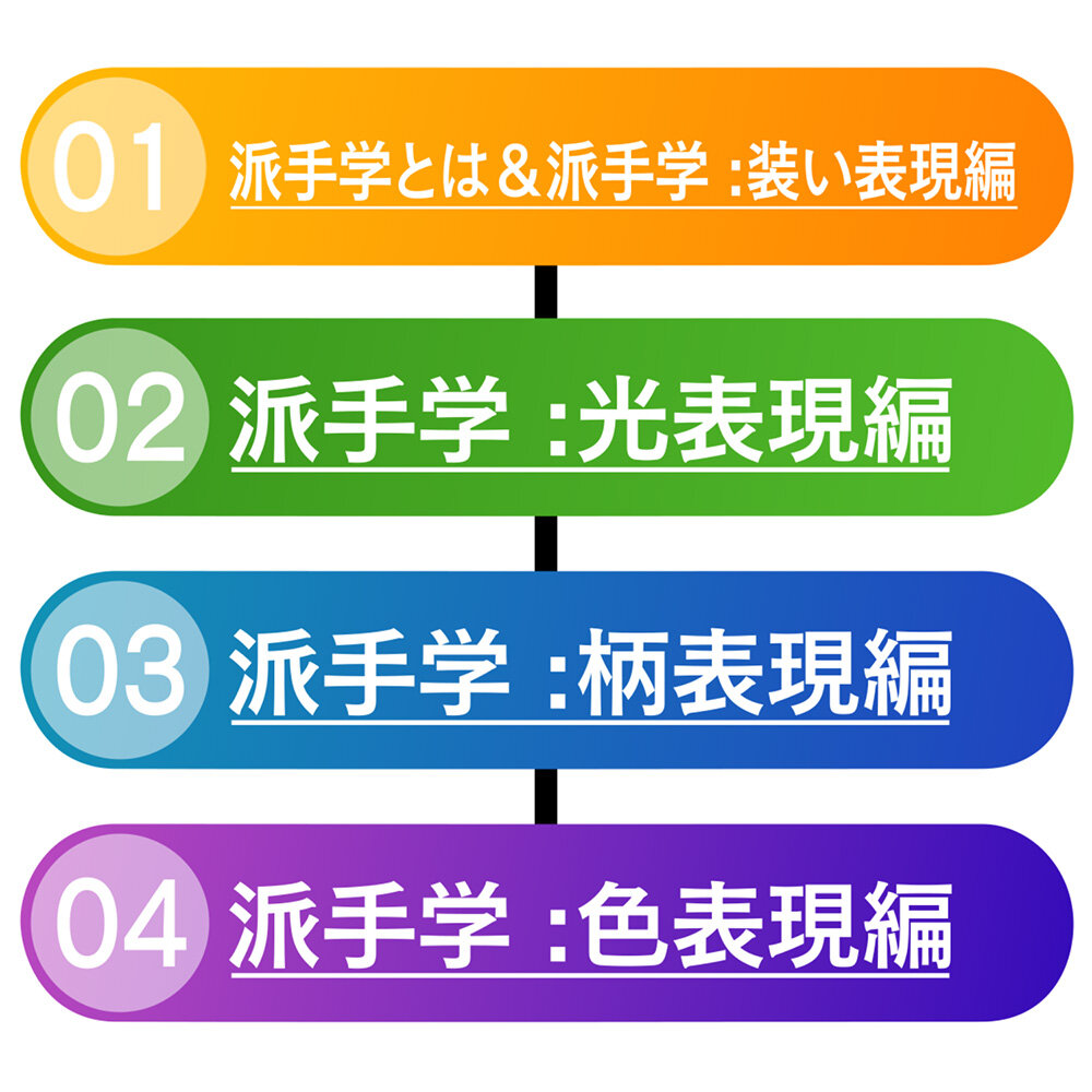 派手学というのは実際に学問として存在はしていませんが、人が派手を感じる感覚を分解して体系として理解していくことと定義しておきます。
