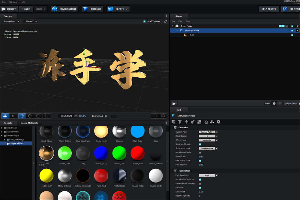 プリセットのGoldを適用してあげるとこの通り! そしてBevelは5つまで増やすことができるのです!