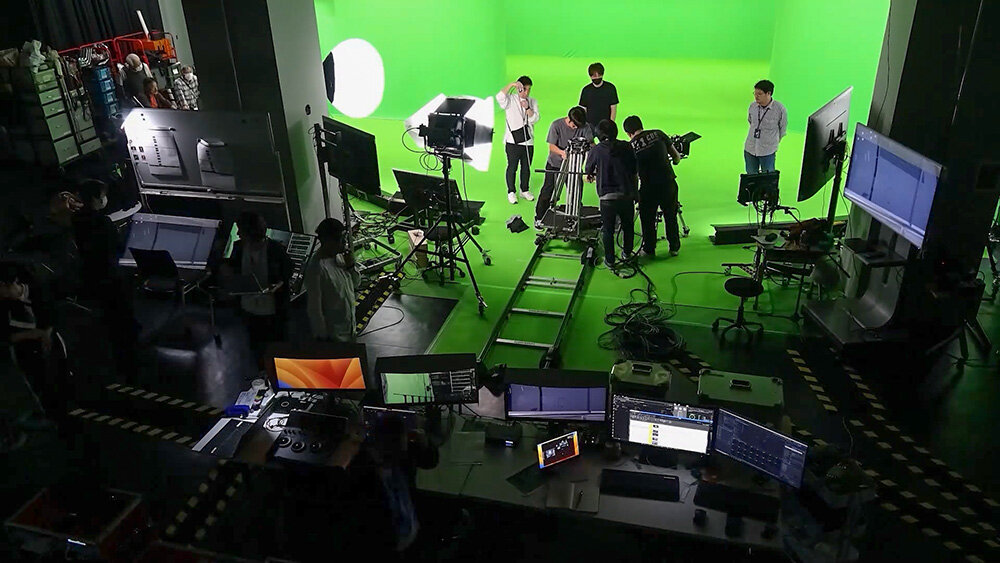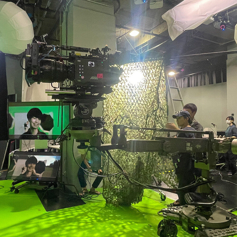 SHIBA studioはグリーンバックのバーチャルスタジオです。映画撮影、MV撮影、PV撮影、CM撮影、配信、モーションキャプチャの実績があります。スタジオの仕様はカメラ(ARRI社「ALEX 35」)、リアルタイムエンジン(Zero Density社「Reality Engine」)、モーションキャプチャシステム(VICON社「Valkyrie」)を有機的につないでいます。撮影時はリアルタイム合成の完成イメージを俳優や撮影スタッフと確認しながら撮影できる環境ができています。これにより照明の計画やカメラワークの検討、撮影時間の短縮にもつながります。バーチャル環境を熟知したスタッフがサポートします。