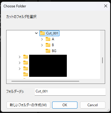 3.カットの素材フォルダを選択(STEP 1で用意したもの)