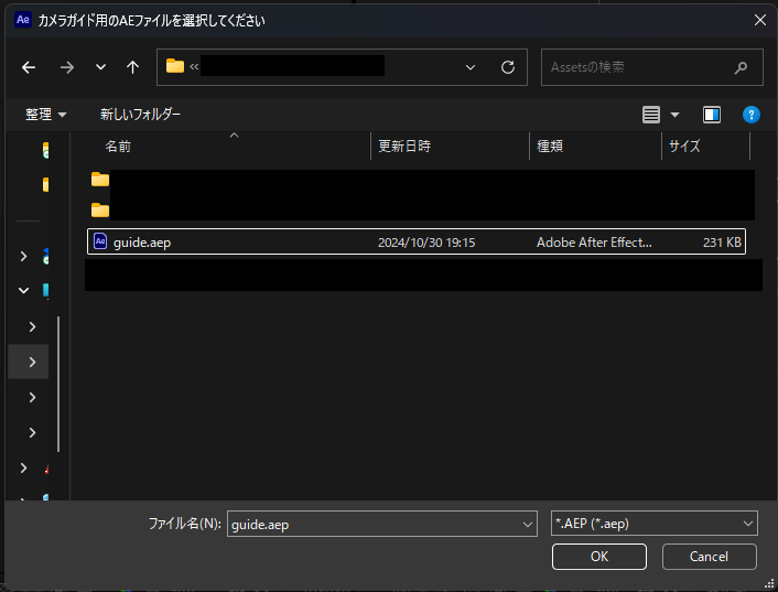 4. 続いて、ガイド用の guide.aep ファイルを選択して[OK]で実行します