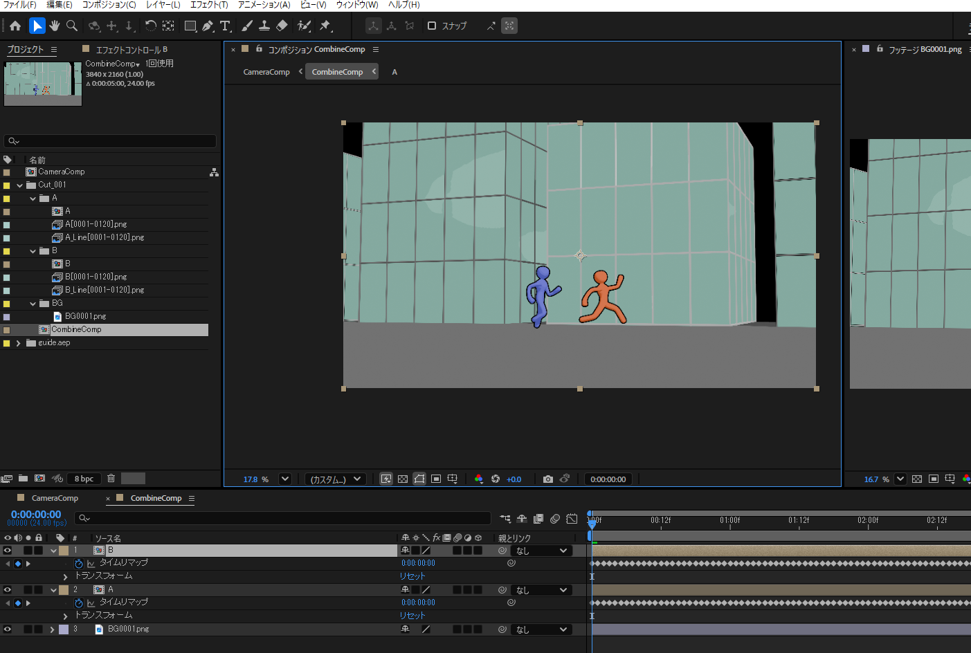 ・CombineComp:キャラクター・背景素材をタイムリマップ付きで統合