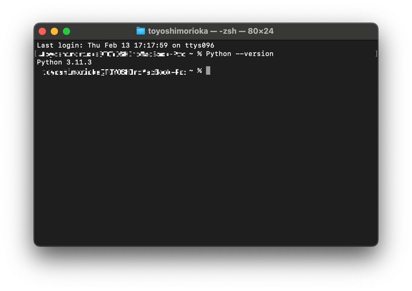 Macの場合は「ターミナル」、Windowsの場合は「PowerShell」を起動して、”python --version”と入力し、3.6以上のバージョンと表示されれば準備完了です。