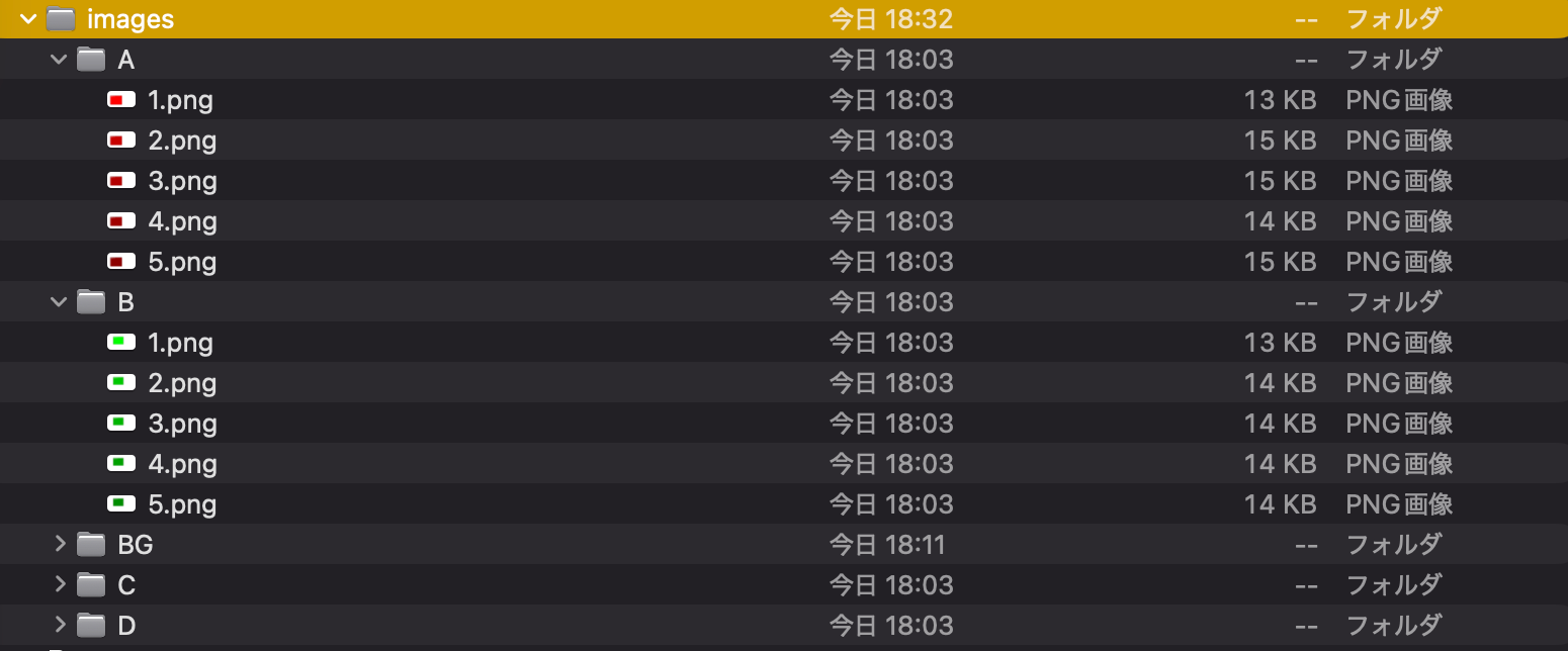 A、B、C…といったフォルダ名がレイヤー順として扱われるため、上に表示したいものほどアルファベット後方になるように整理すると、仕上がりが分かりやすくなります。