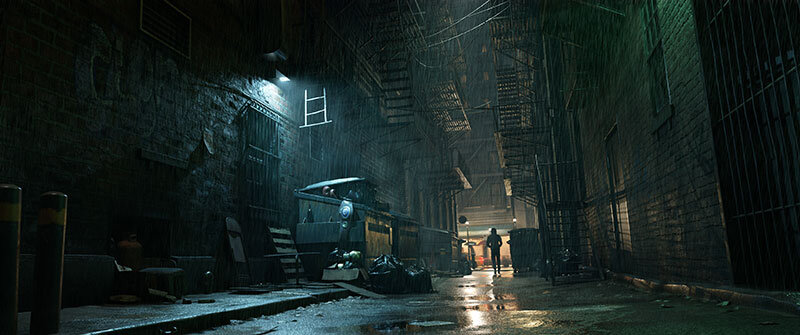 アメリカの大都市の裏路地にある、どこか治安の悪い空気感がとてもよく再現されている作品だと感じました。雨による湿った雰囲気や、地面にできた水たまりの反射表現が美しく、空気の温度や匂いまで伝わってくるようです。また、鉄格子や梯子、手すりなどがほんの少し歪んでいる表現に、実際の街をよく観察した痕跡が感じられ、生活や時間の蓄積がうまく描かれているのも良い点です。さらに良くしていくのであれば、人物まわりの光の扱いを少し調整してみるとよいかもしれません。奥の人物がやや環境に埋もれてしまっているため、rim light(縁の光)をわずかに強めたり、背景側の明暗差を整理することで、視線の誘導がより自然になります。また、「過去の栄光」を象徴するチャンピオンベルトとボクシンググローブが少し気づきにくいため、配置や色のコントラストを意図的に強調してあげると、ストーリーがより明確になります。加えて、雨粒のサイズや密度に場所ごとの変化をつけると、空間の奥行きがさらに強く感じられると思います。
