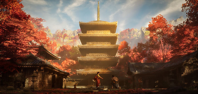 (Environment Generalist 岩崎 美穂)美しい紅葉や塔、中央のキャラにも目が行って綺麗。よく見ると奥の崖にも建物があるのがいいですね。五重塔の右横の少し高さのある木だけ色がグラデーションになりすぎているのが少し気になりました