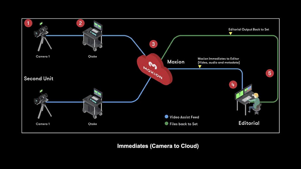 Moxionは、QTAKEと連携し、「Camera to Cloud」技術を開発。この技術は急速に成長し、『ロード・オブ・ザ・リング:力の指輪』シーズン1といった撮影現場でも採用されるに至った。