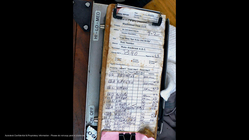 ヒュー・カルベリー氏(以下、カルベリー氏)は2009年、ハリウッド映画『30デイズ・ナイト』で制作アシスタントを務めた頃の自身の経験を振り返った。当時の映画制作は、まさに物理的なフィルムを扱う作業であり、彼が現場で常に直面し、フラストレーションを感じていたのが「カメラログシート」だったという。カーボン紙3枚綴りの紙で、重要なカメラ情報を手書きで記録する用紙だ。