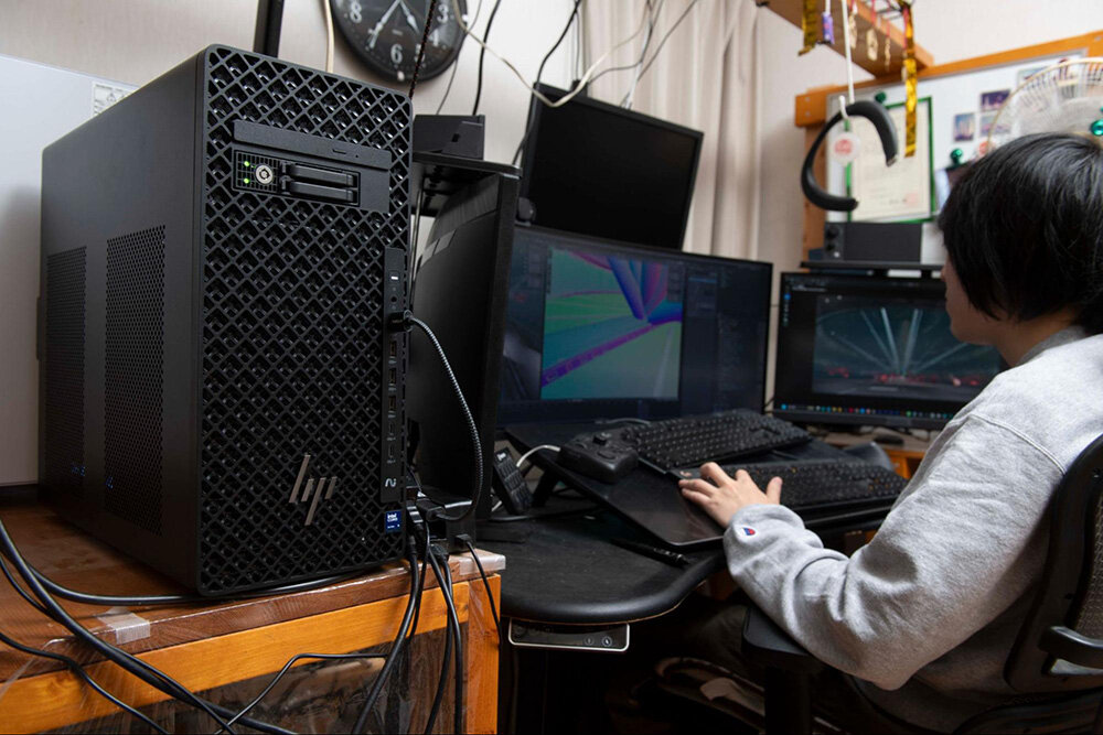 藤田氏のようなハイエンドなCG制作において、PCのスペックは作品のクオリティそのものに直結する。今回、藤田氏が検証を行ったのは、HPの最新ワークステーション「HP Z2 Tower G1i Workstation」。ハイエンドの3DCG制作負荷にも十分対応可能なスペックを備えるモンスターマシンである。