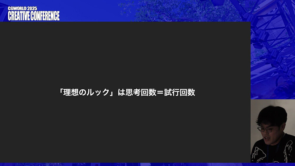 11月23日(日)に文京学院大学本郷キャンパスで開催された「CGWORLD 2025 CREATIVE CONFERENCE」に登壇した彼らは、Vaundy『replica』MVなどのメイキングを通じ、思考回数を最大化するための独自ワークフローを公開。さらに、その高速な試行錯誤を支えるマウスコンピューター「DAIV FX-I7G80」とインテル® Core™ Ultra プロセッサーの実力について、クリエイター目線で語り尽くした。