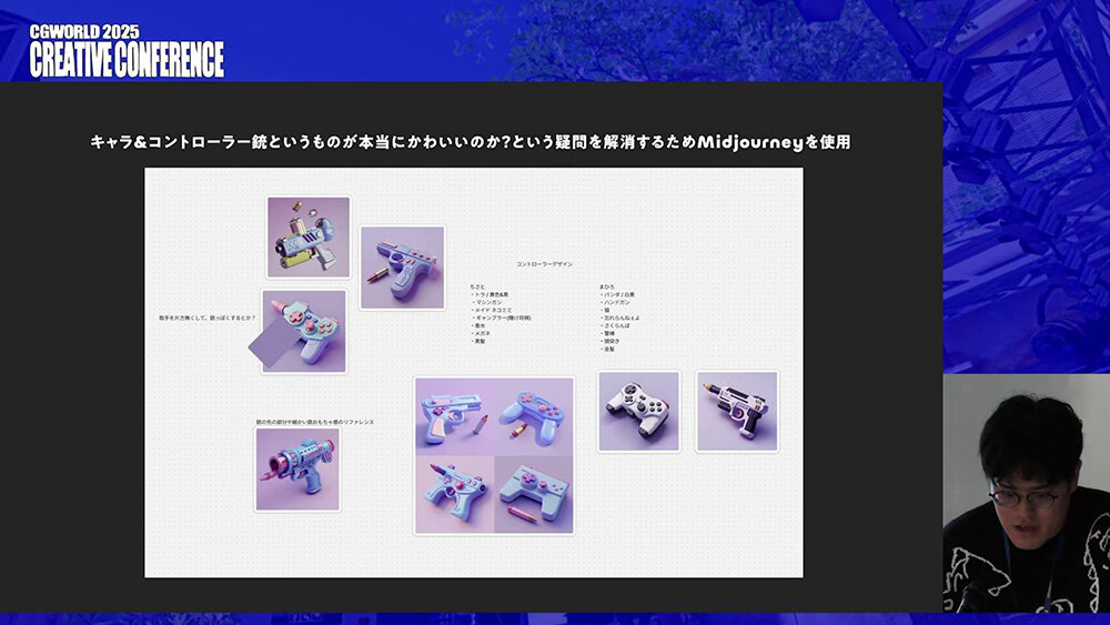 「『コントローラの形をした銃』というアイデアはあったんですが、それが本当に可愛いのか確信がもてなくて。それを解消するためにMidjourneyを使いました」(TAKUTO氏)。