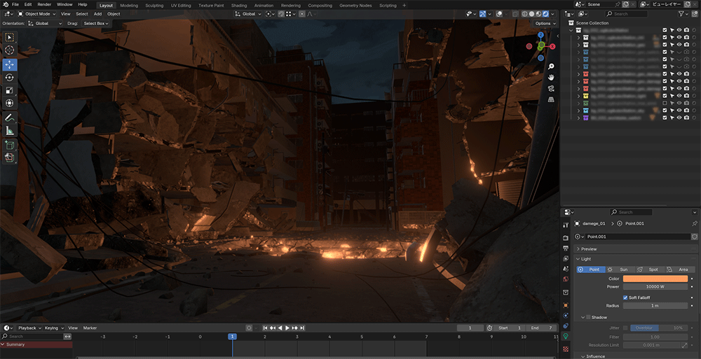 坂本:『レゼ篇』では、大阪スタジオが背景CGをメインで担当したシーンがあったのですが、その全てをBlenderで制作するという新しい取り組みを行いました。その結果、データ量が膨大となり、非常に負荷の高い作業となりました。