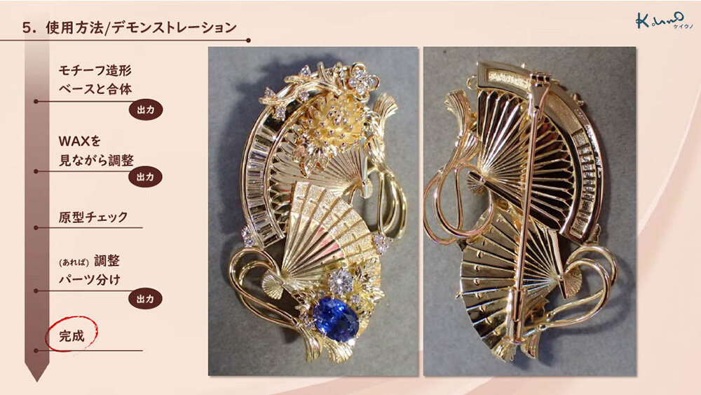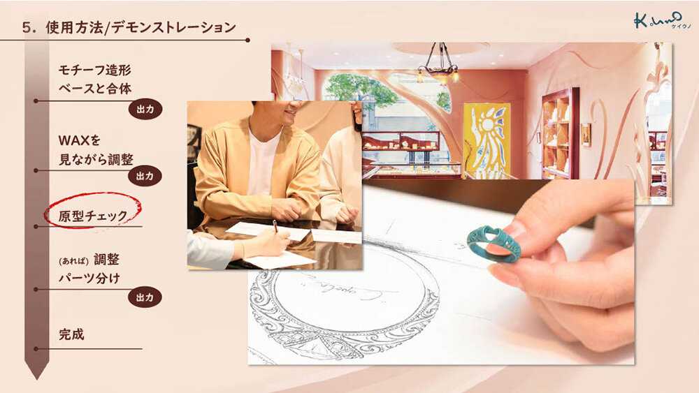 耕田:導入以前は手加工の部署も挟まないと原形作成が完結できなかったんですが、現在ではオーダーメイドのモチーフジュエリーは全て部署内で完結できるようになりました。さらに、原型加工の時間も従来の半分ぐらいになったので、より多くのお客様に喜びをお届けすることができていると感じています。