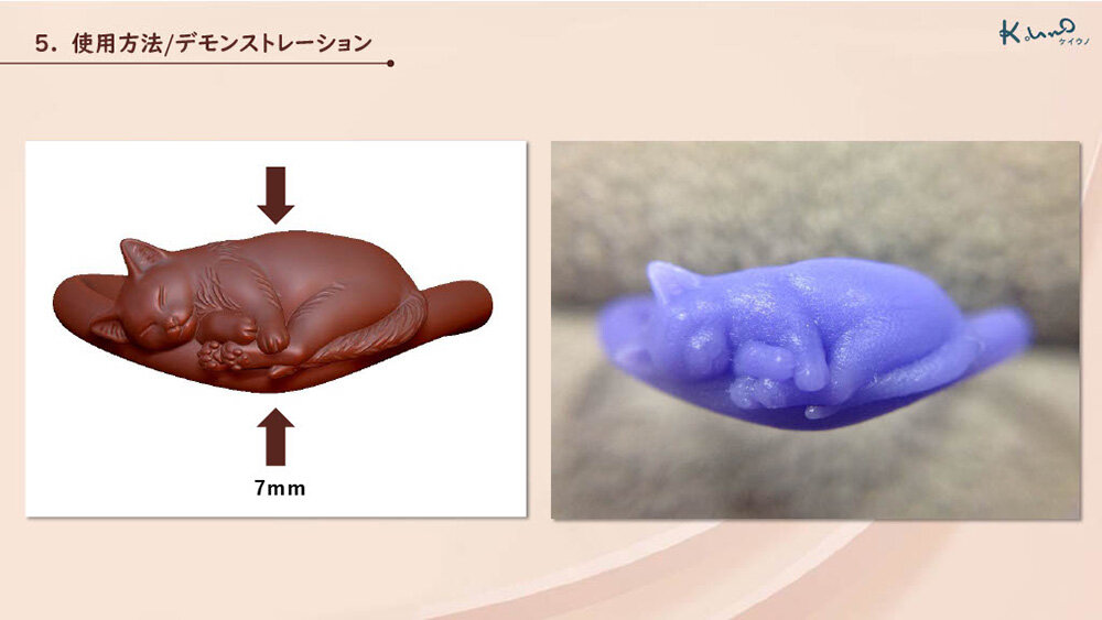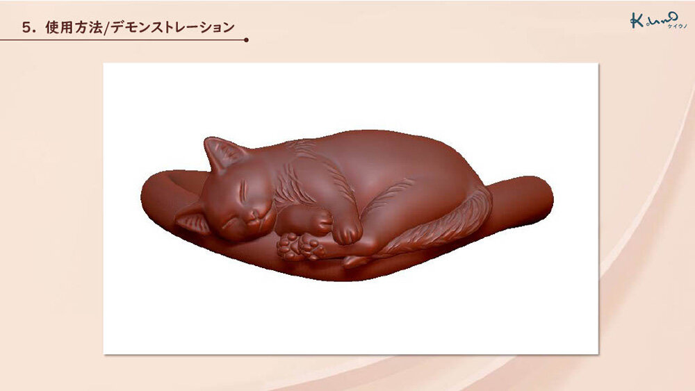 ――確かにモデルで見たら少しオーバーかとも思ったのですが、こうやって出力してみると、顔の表情も出ていて可愛いです。肉球もちゃんとありますね。