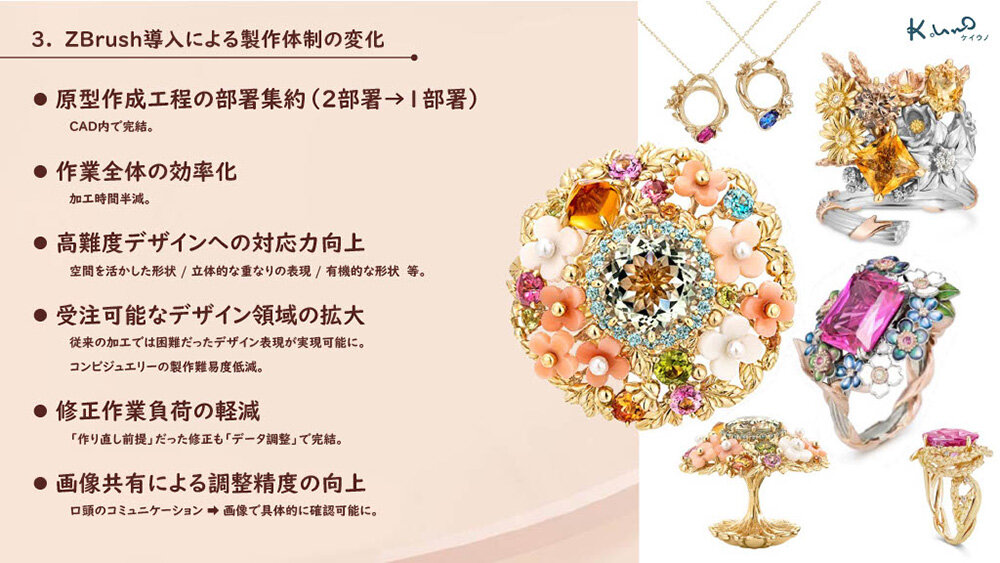 年間4万種類ものデザインを生み出すオーダーメイドジュエリーブランド「ケイウノ」は、なぜジュエリー製作の世界に、3DCGツールであるZBrushを導入するに至ったのか、また現在ZBrushをどのように活用しているのかを、記事でも詳しくお届けする。