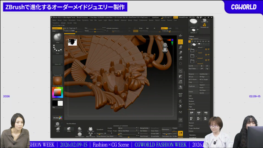 3DCGとファッションの今とこれからを伝えるオンラインイベント「CGWORLD FASHION WEEK」が、2026年2月9日(月)から2月15日(日)までの1週間にかけて開催された。本記事では、Day4に行われたセッション「ケイウノが語る、ZBrushで進化するオーダーメイドジュエリー製作」の模様をレポートする。